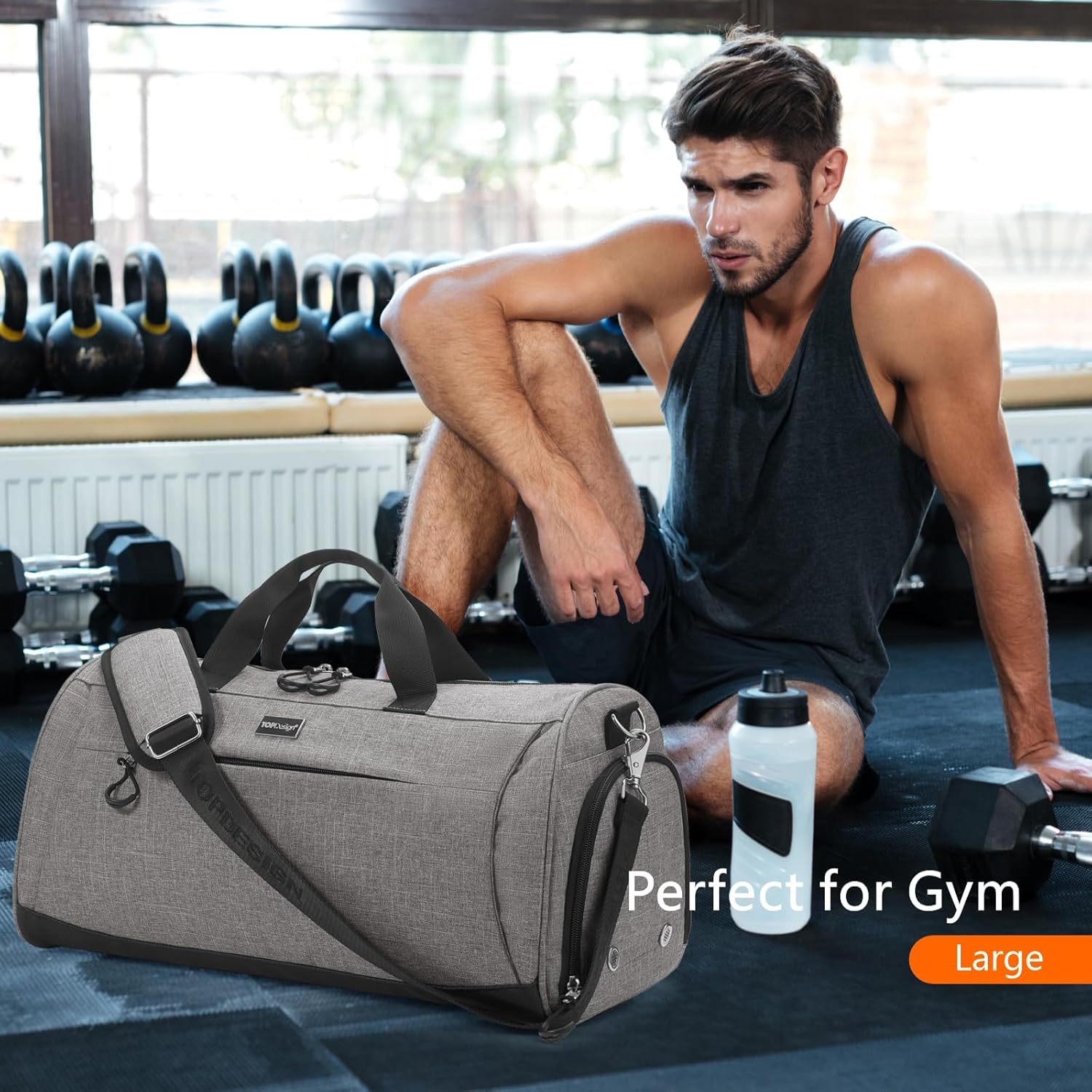 TOPDesign Gym Bag for Women & Men, Unisex Duffel Bag with Shoe Compartment & Wet Pocket for Travel Sports Gym (L Textured Grey)