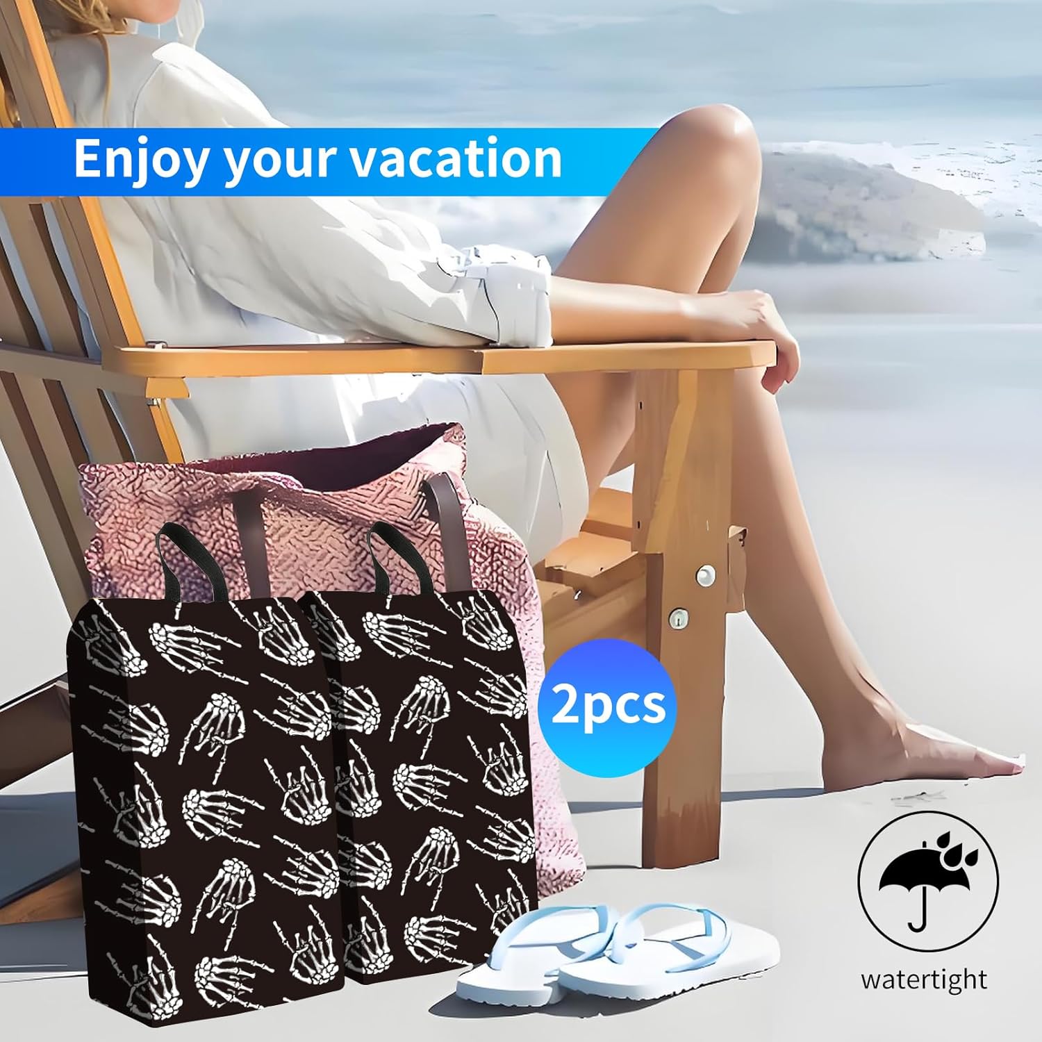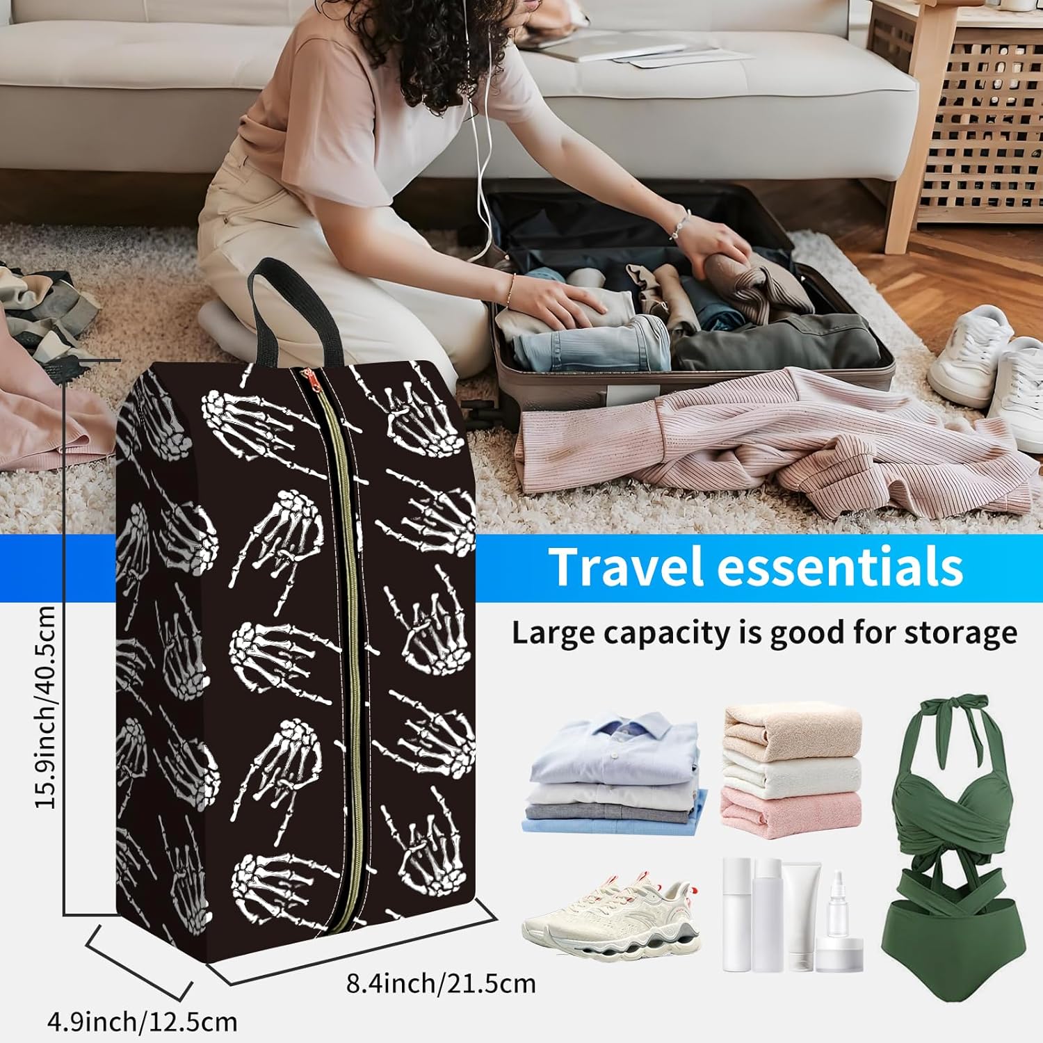 2pcs Shoe Organizer for Travel, Packing Shoe Travel Bags, Cute Shoe Bag with Zipper & Handle, Portable Travel Essentials for Women and Men Skull Finger