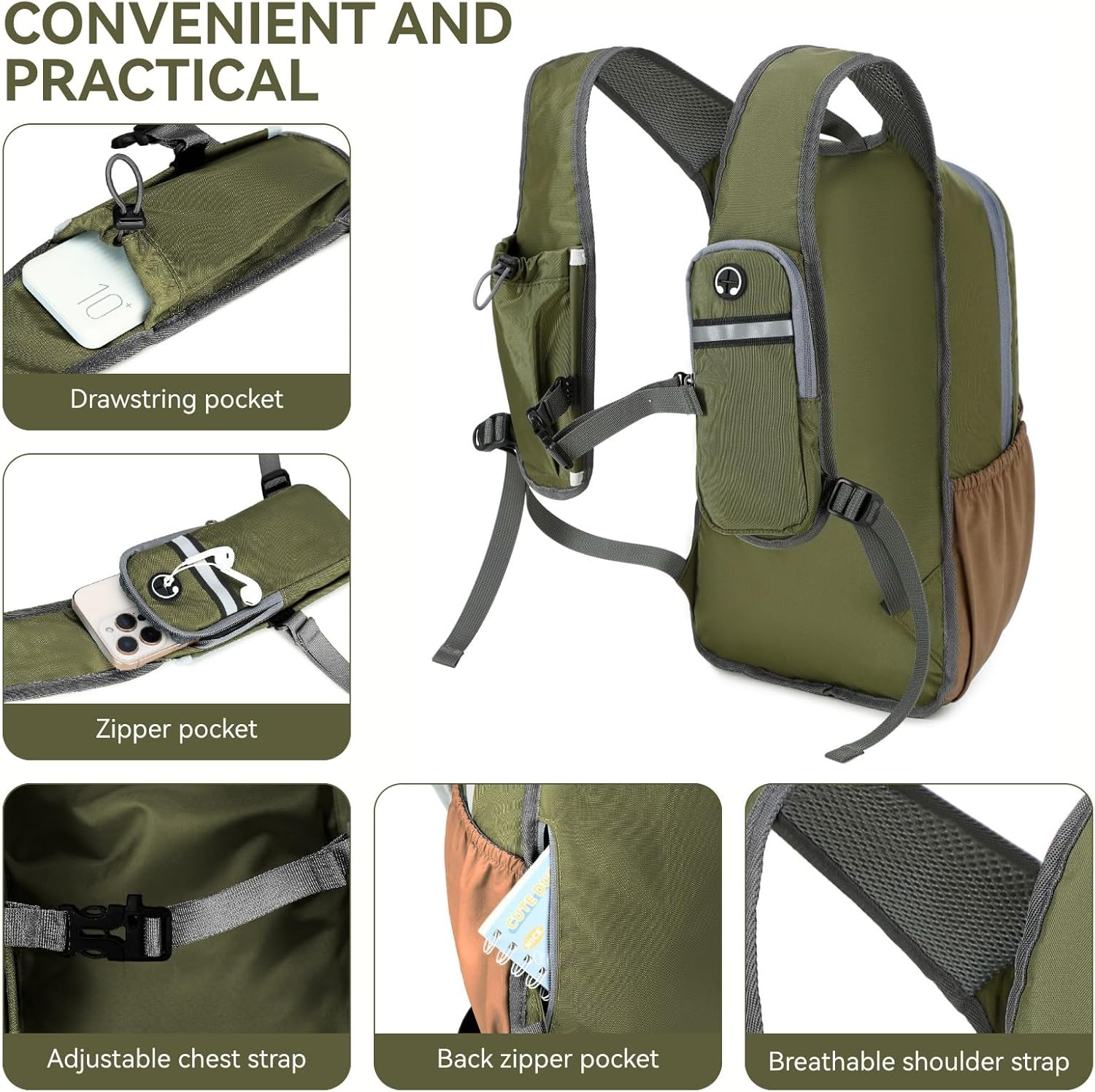 • Unique Shoulder Strap Design: The ergonomic shoulder straps feature a secure zippered pocket (fits phones up to 7”) and a drawstring pocket for quick access to essentials like keys, cards or snacks. Save yourself the hassle of taking off your backpack while hiking. Whether you're hiking, biking or traveling, these smart pockets keep your valuables safe and within reach.