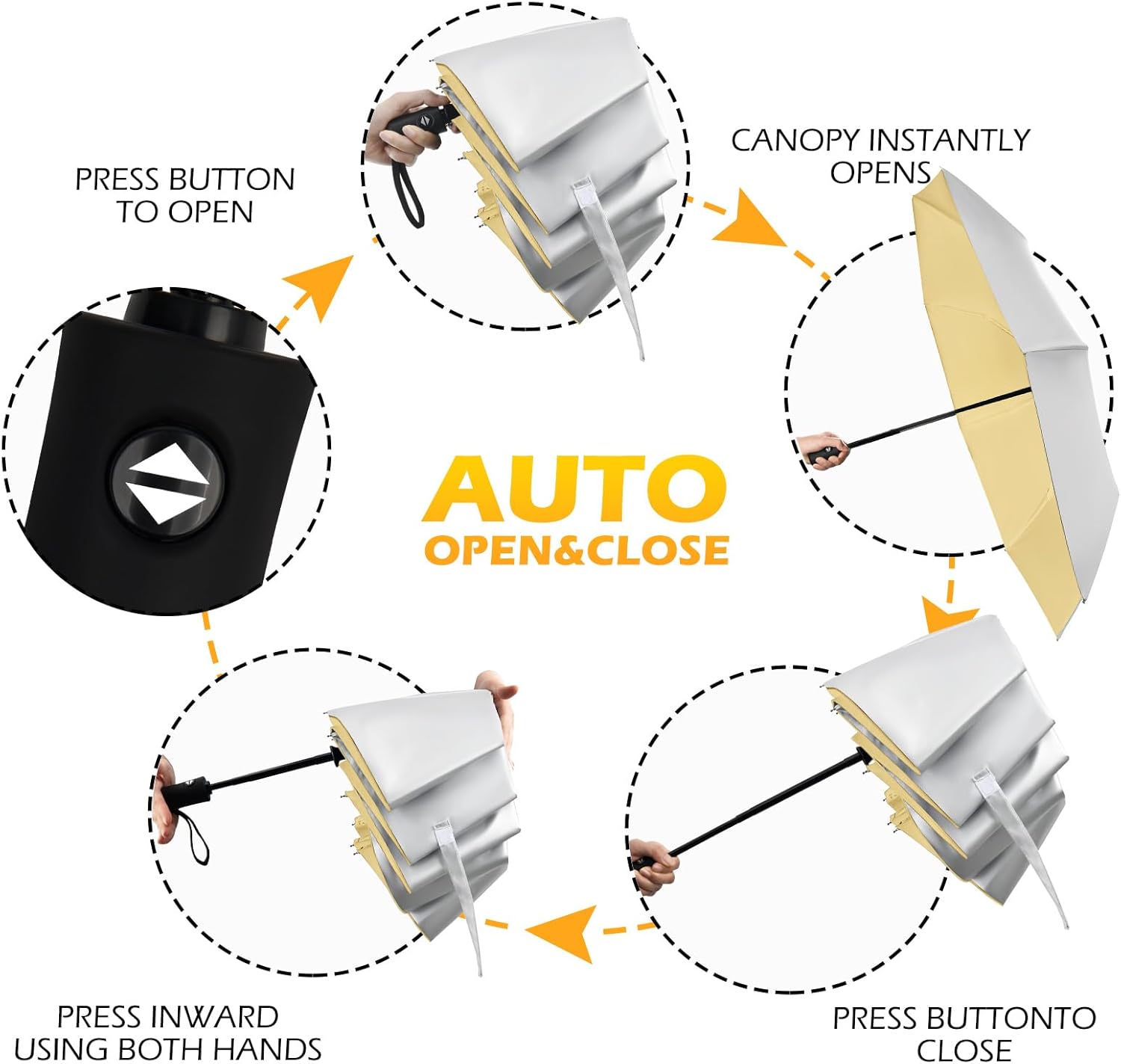 • One Click Automatic Open&Close: Automatic compact travel umbrella is designed with a one click automatic button, which can be operated with one hand and is extremely convenient to use, suitable for most people. It can provide efficient and convenient opening and closing function services, allowing you to easily face suddenly adverse weather conditions.