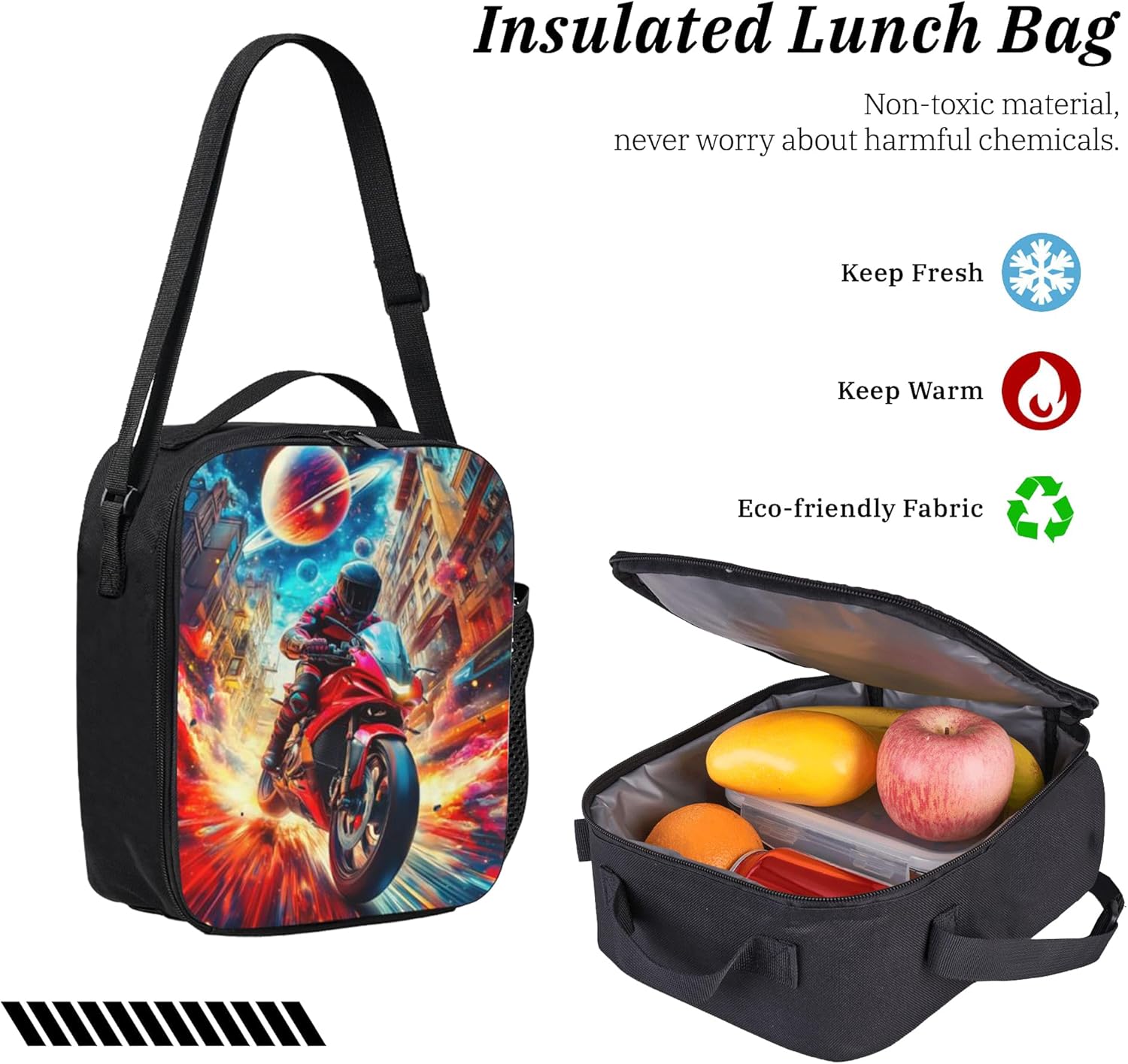 • 【Lunch Box Features】The kids lunch box is made from polyester, and insulation layer lining to keep meals warm or cool for hours. Lunch bag has a pocket and a mesh pouch pocket on the right side. zippered design, handy for snacks, fruits, or lunch containers.suit for camping, picnic, travel, school.