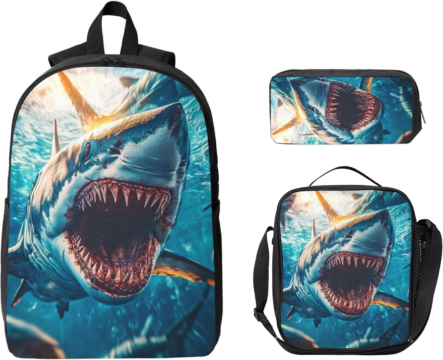 Fish Ocean Kid Backpack Set with Lunch Bag & Pencil Case Large Capacity School Bag 17 Inch Bookbag for Boy Girl