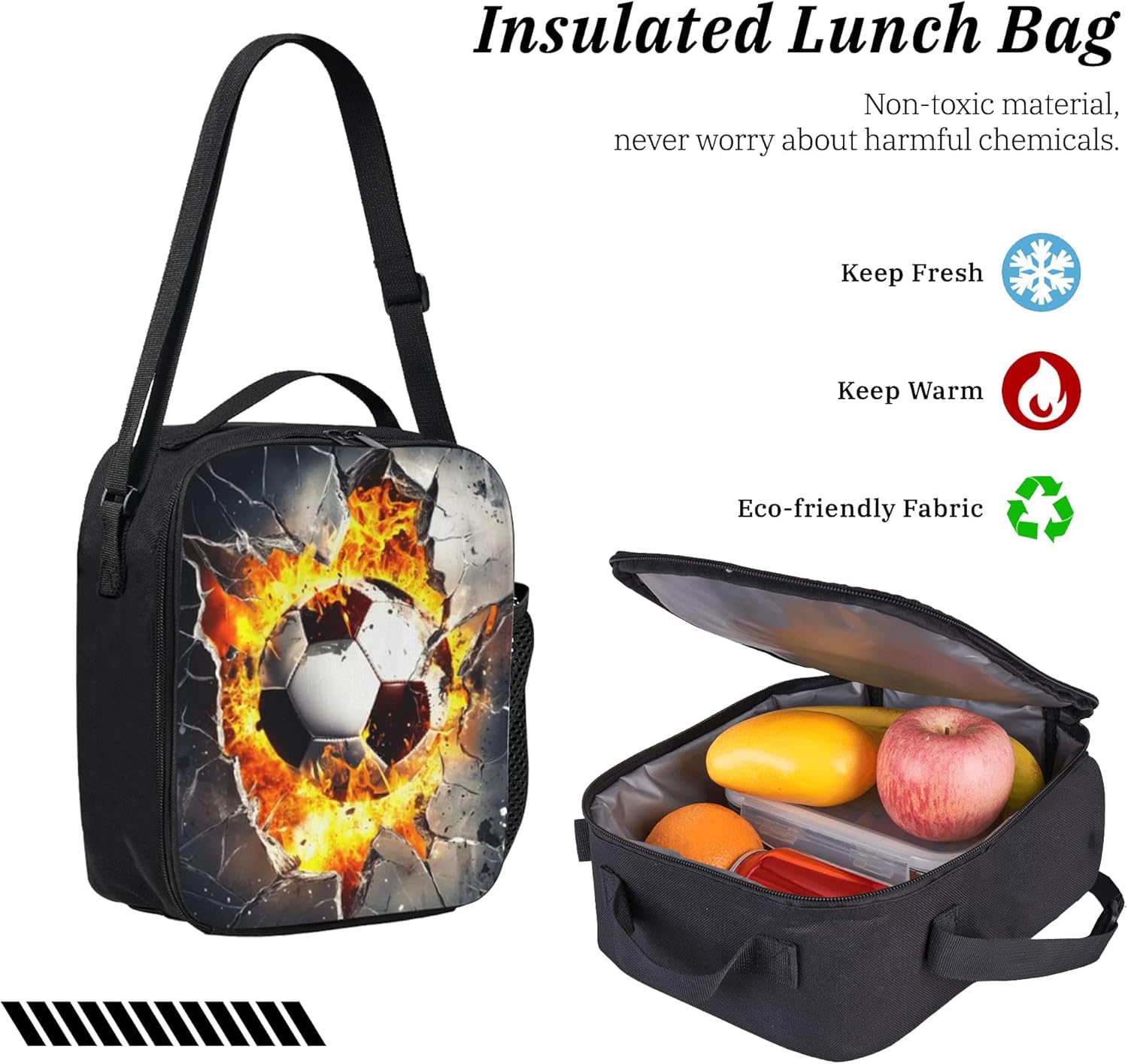 Soccer Kid Backpack Set with Lunch Bag & Pencil Case Large Capacity School Bag 17 Inch Bookbag for Boy Girl