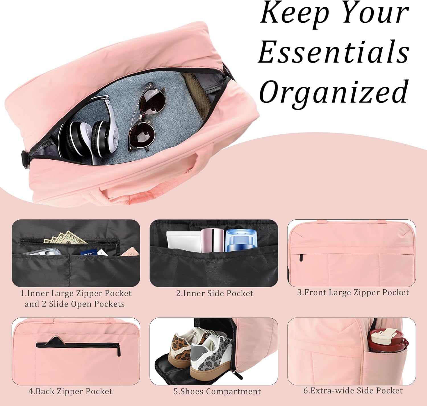 U+U Gym Bag for Women, Duffle Bag with Shoe Compartment Travel Carry on Weekender Bag, Personal Item Travel Bag for Overnight, Water Resistant
