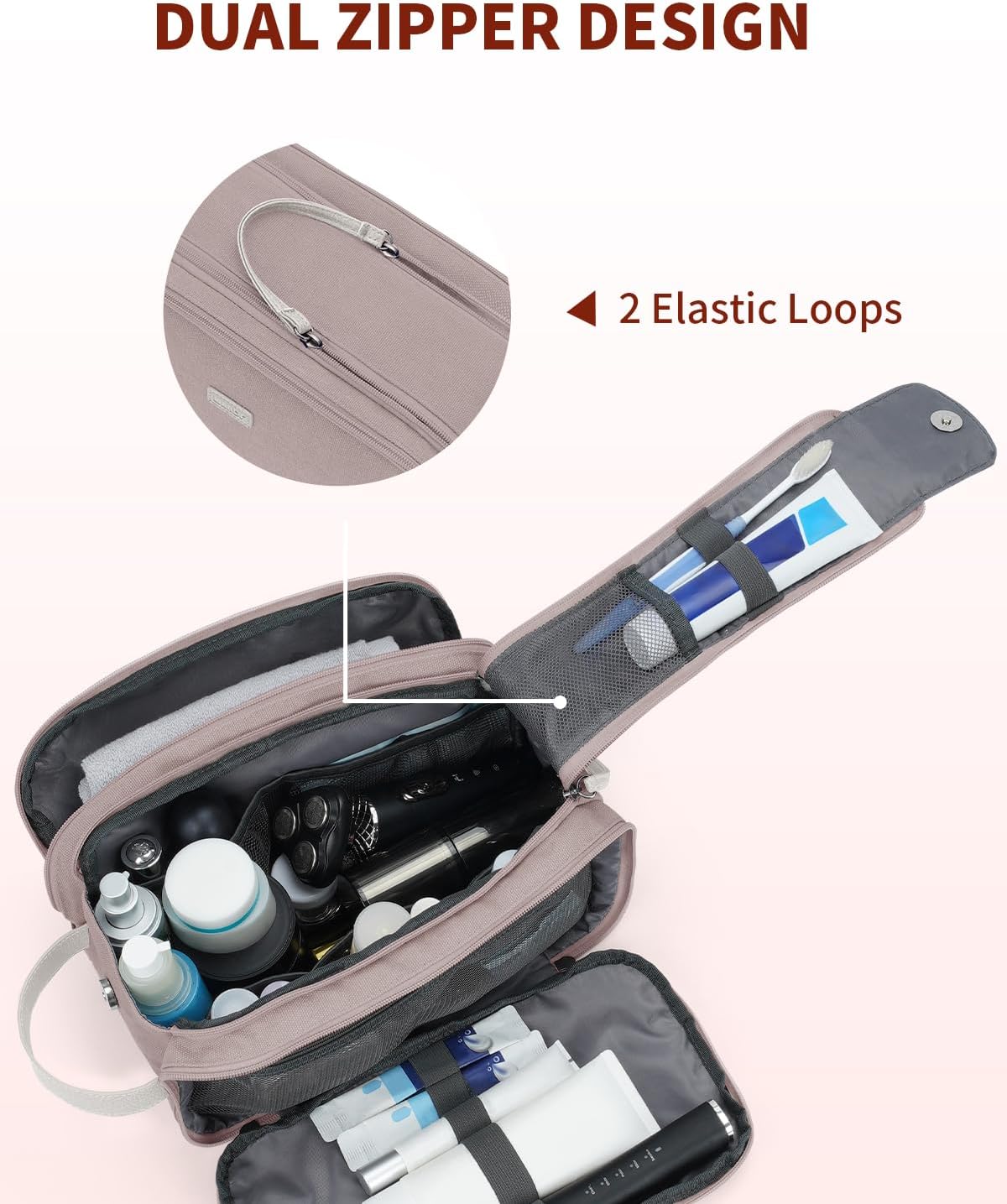 • 【Stay Organized on the Go】: Available in two sizes, the Medium (9.4''L x 5.9''H x 5.5''W ) and Large (11.5''L x 6.3''H x 6.5''W ) toiletry bags fit all your travel essentials. The Medium size is perfect for individual use, while the Large size offers ample space to hold toiletries for the whole family. The mesh pockets keep bottles upright, and two elastic loops in the lid help secure items like toothbrushes or razors.