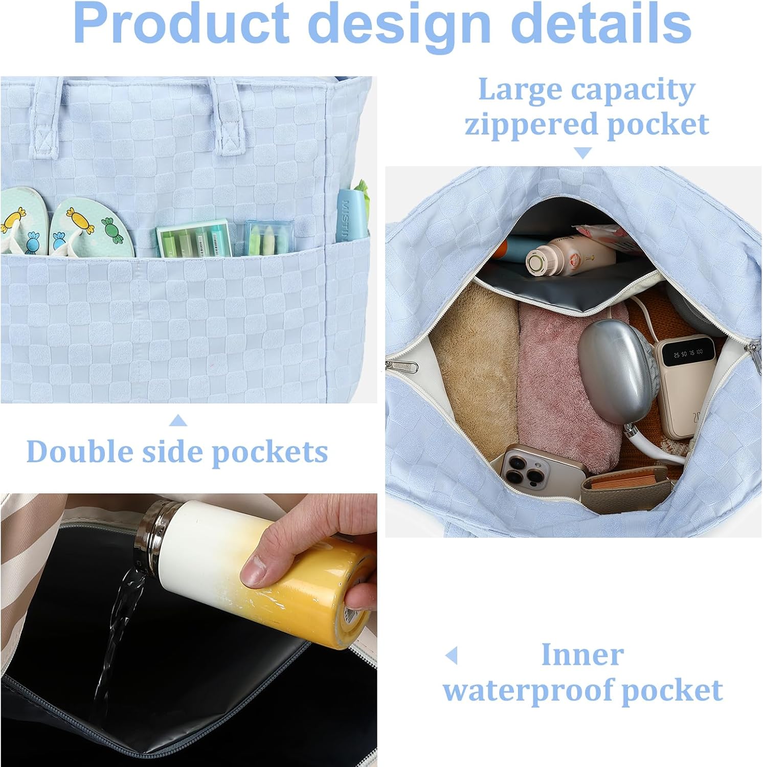 LEDAOU Large Beach Tote Bag Women Waterproof Sandproof Zipper Beach Tote Bag for Pool Gym Grocery Travel with Wet Pocket