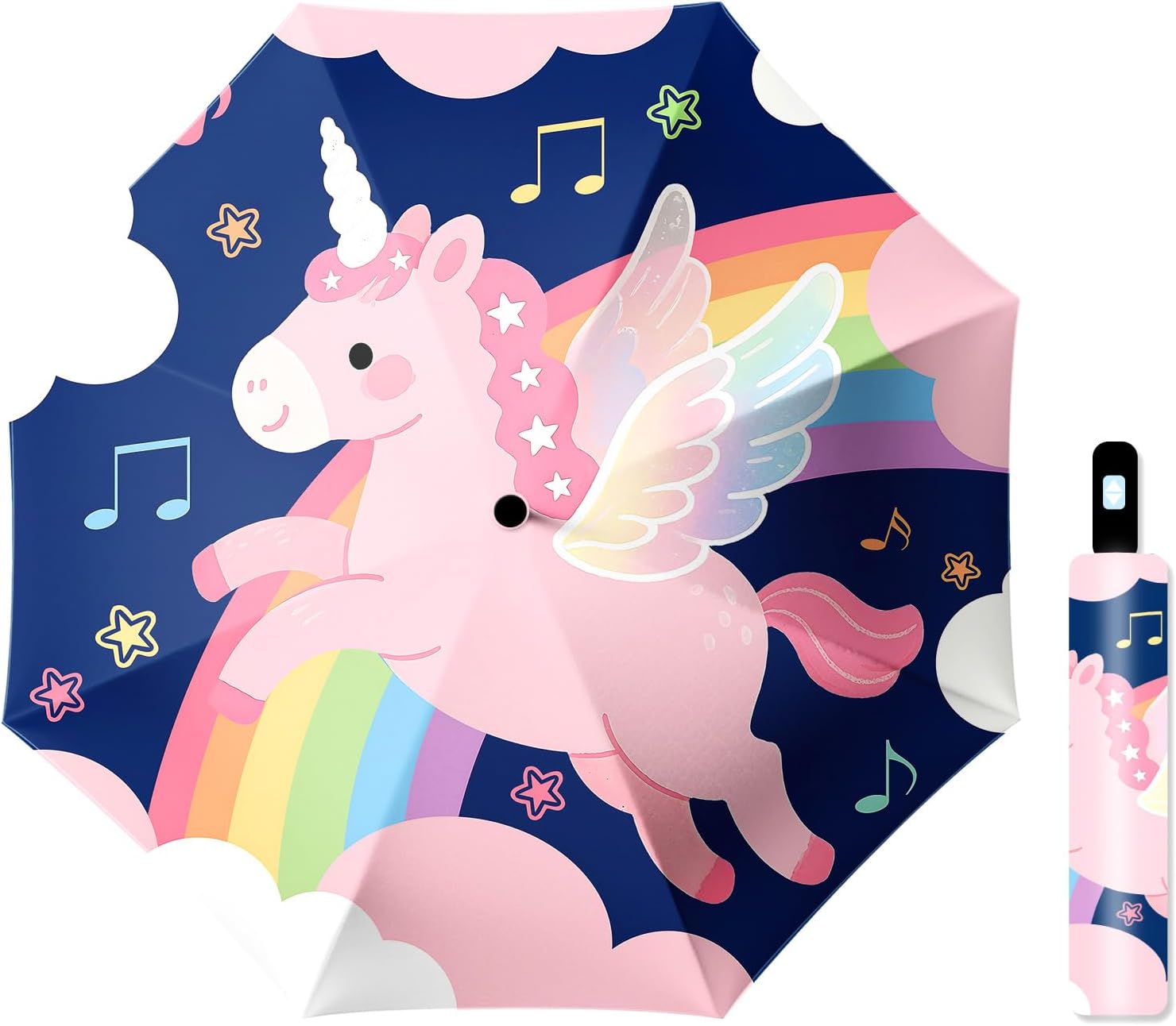 Small Travel Folding Umbrella for Girl, Portable, UV, SunShade, Compact, Automatic, Rain & Wind