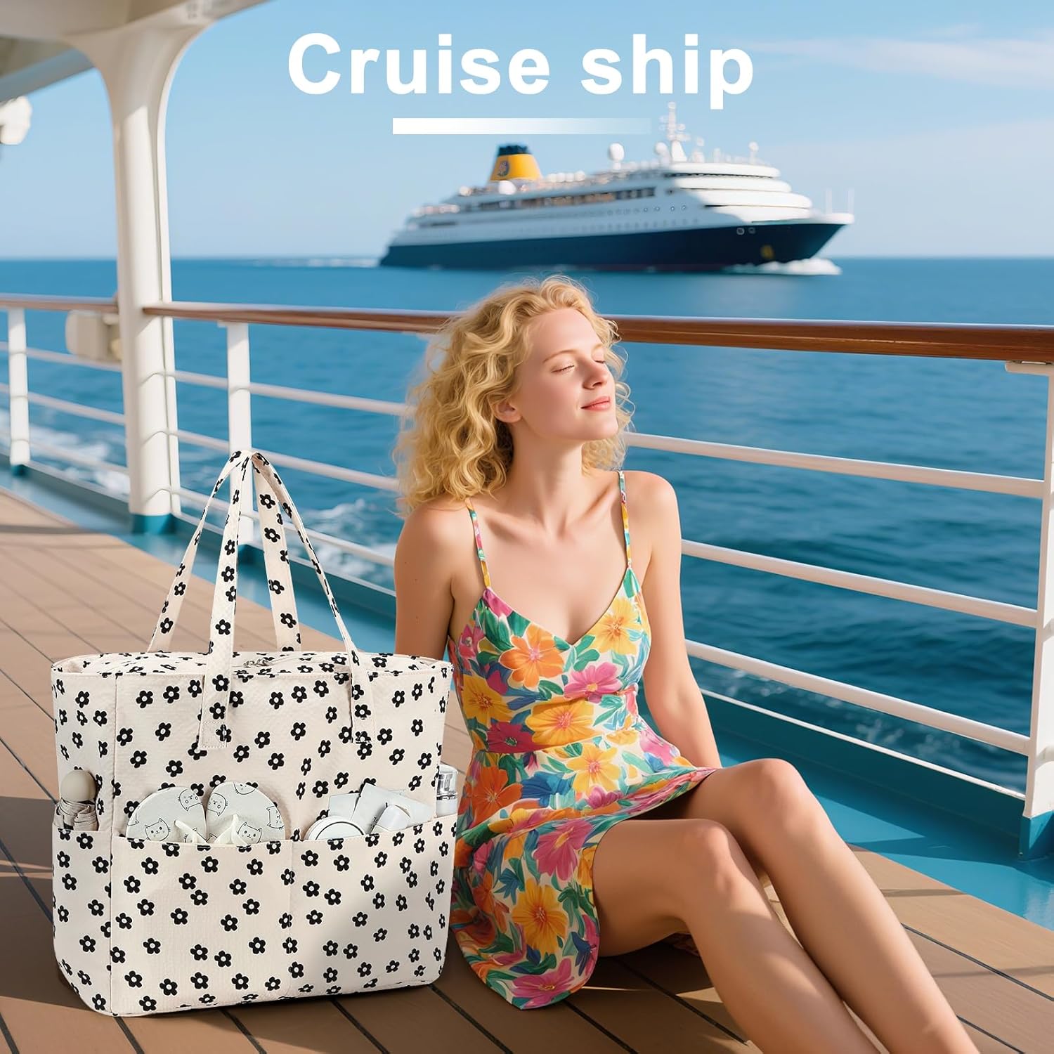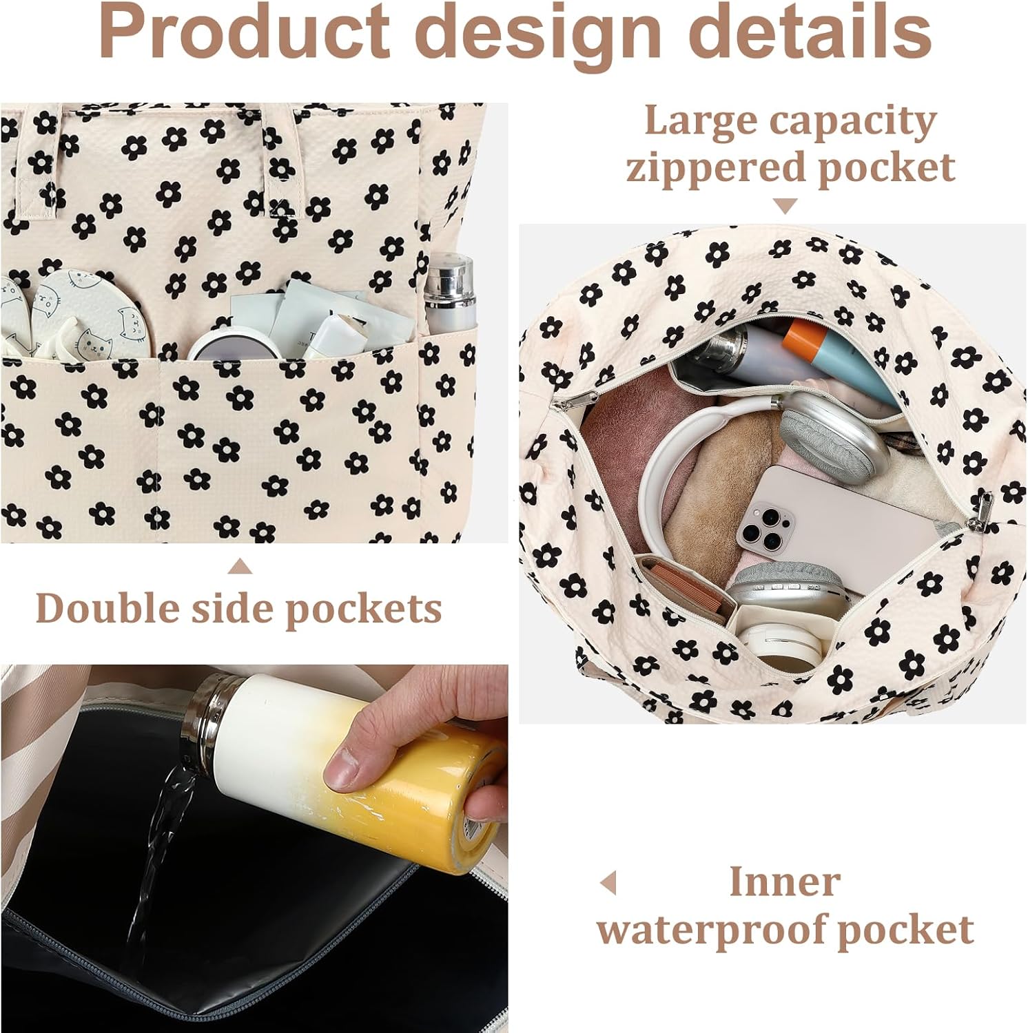 • Tote Bag with Zipper perfect for carrying when you step out for beach, travel, weekender, swimming, pool, gym, s hopping, picnic since it folded up small and lightweight, can be tucked in your backpack or luggage case easily. Also a good choice for reusable grocery tote, diaper bag, carry-on bag, travel bag, storage bag, really a super practical beach bag for women, grab one of them, it will not let you down.