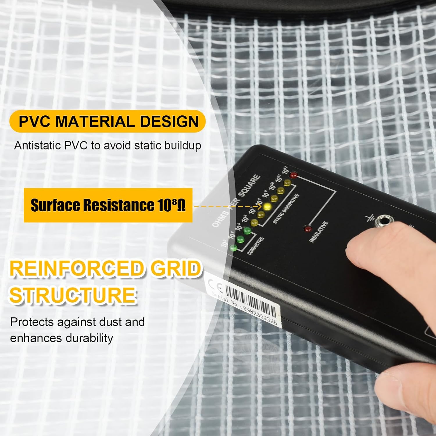• Industrial-Grade Anti-Static Performance: Constructed from conductive polyvinyl chloride (PVC) with a surface resistivity of ≤10⁸ Ω, this bag provides reliable protection against electrostatic discharge (ESD), safeguarding sensitive electronic components in precision work environments.