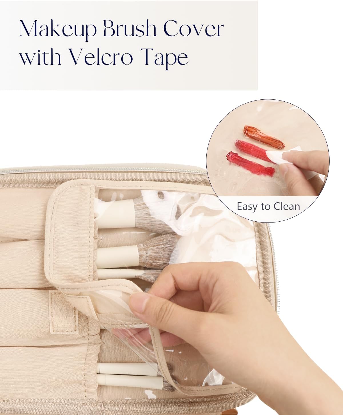 • 【SEPARATE BRUSHES COMPARTMENT】Featuring 4 slots with a transparent makeup brush cover equipped with Velcro tape, the top flap accommodates over ten brushes of varying sizes, while the transparent PVC cover ensures effortless cleaning and dust resistance