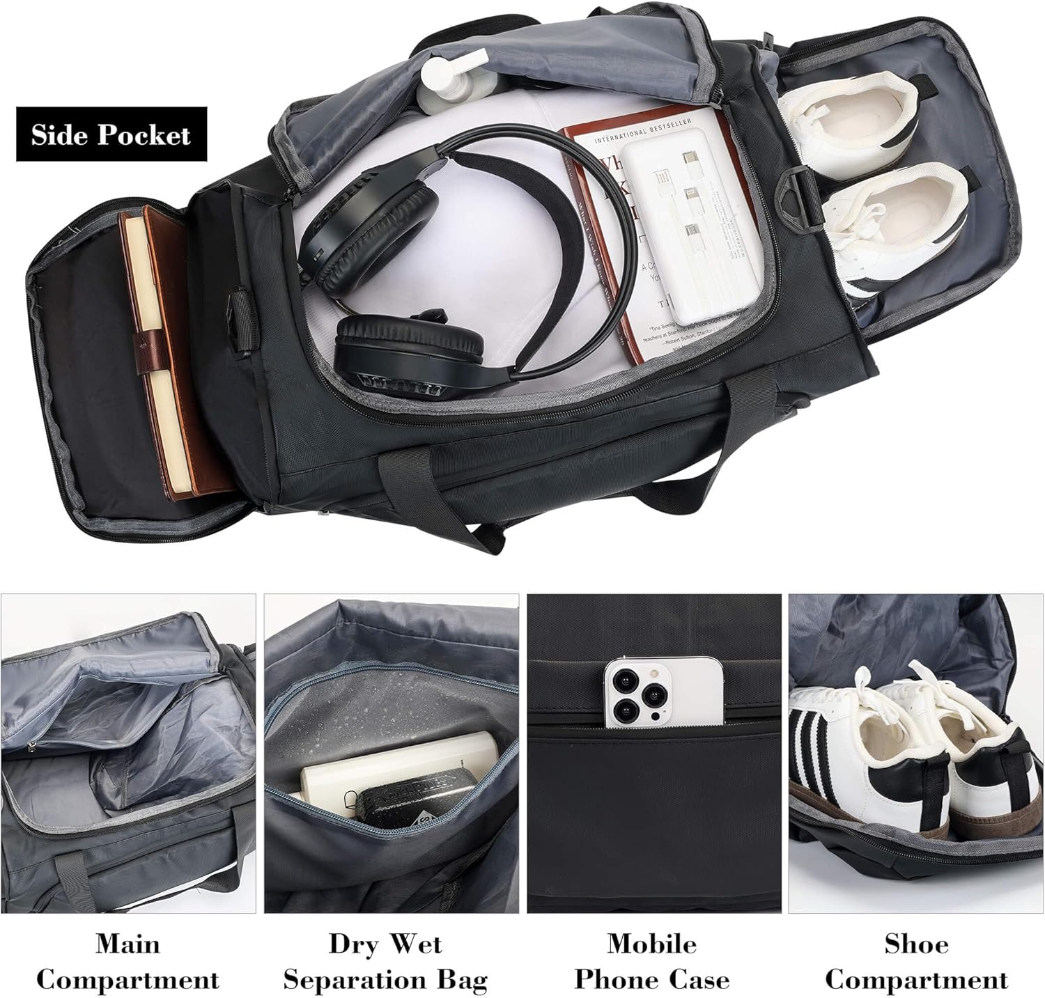• Multi-functional design: Designed for men and women, this mens duffle bag with shoe compartment,Dry wet separation compartment, computer, mobile phone compartment, etc,, fits all your gym and travel needs.