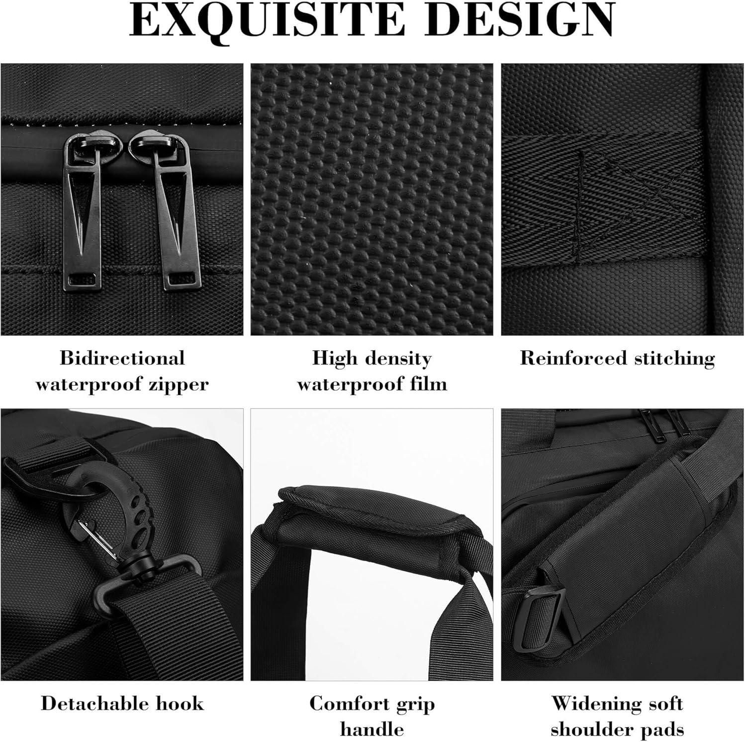 Gym Bags for Men and Women Sport Duffle Bag for Travel Carry on Duffel Bag with Shoe Compartment Dry and Wet Separation 35L Black(Upgrades)