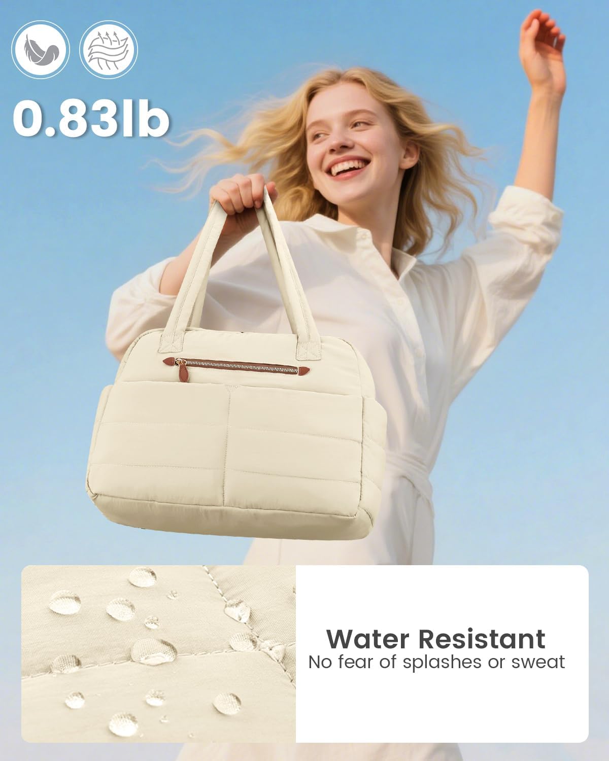 • 【Water-Resistant Outer】Made from high-quality water-resistant polyester, which helps protect against splashes, light rain, and accidental spills—ideal for unpredictable commutes or sudden weather changes while traveling. Soft, quilted design makes it feel soft to the touch and adds a chic, puffy texture. Whether you’re navigating busy city streets, dashing between airport gates, or carrying it to the gym, it keeps your belongings dry, your style on point, and your shoulders comfortable all day