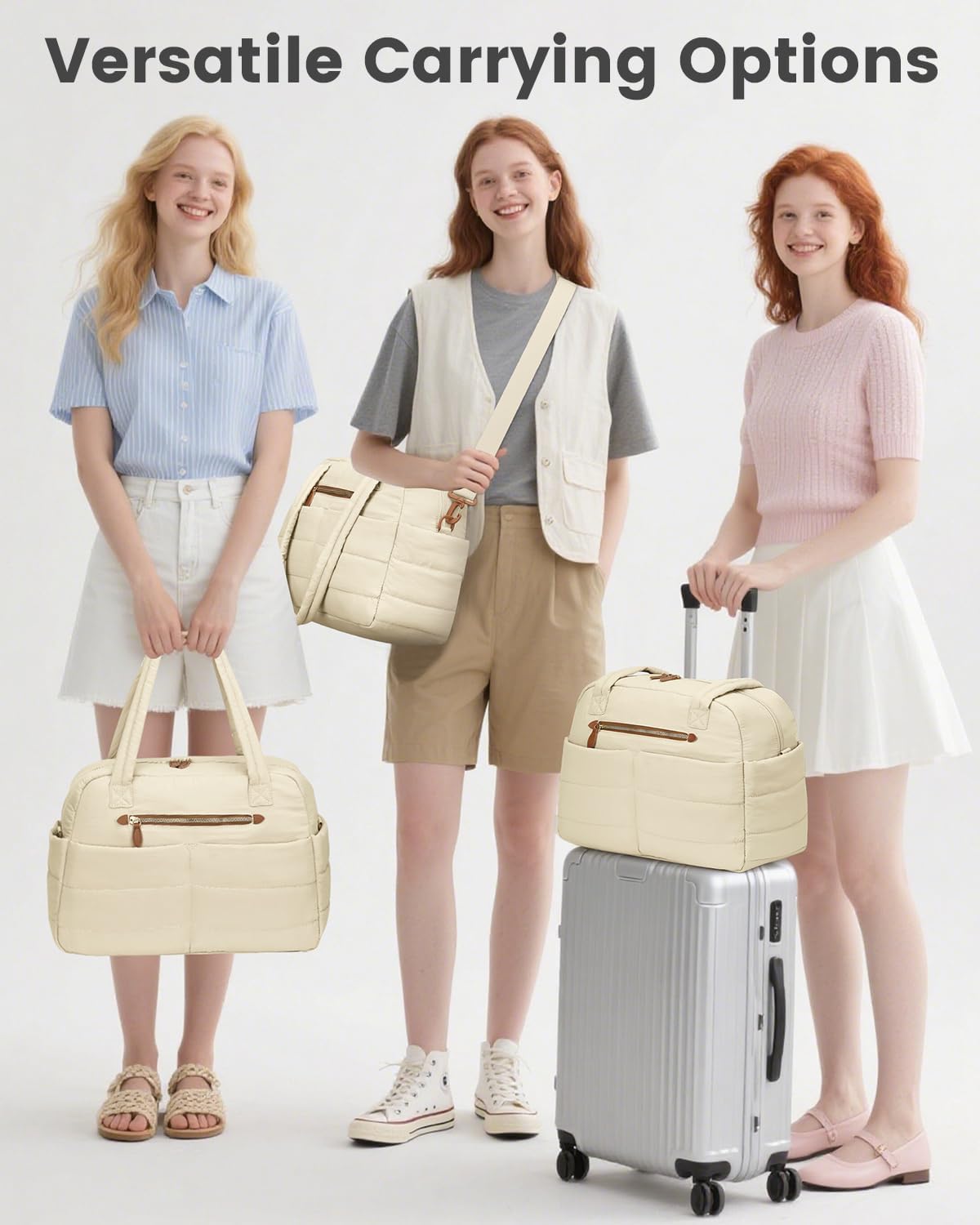 Travel Duffle Bag,Puffer Carry On Duffel Bag with Laptop Compartment Waterproof Overnight Weekender Bags for Women Large Hospital Tote Bags for Labor and Delivery(Medium,Beige)