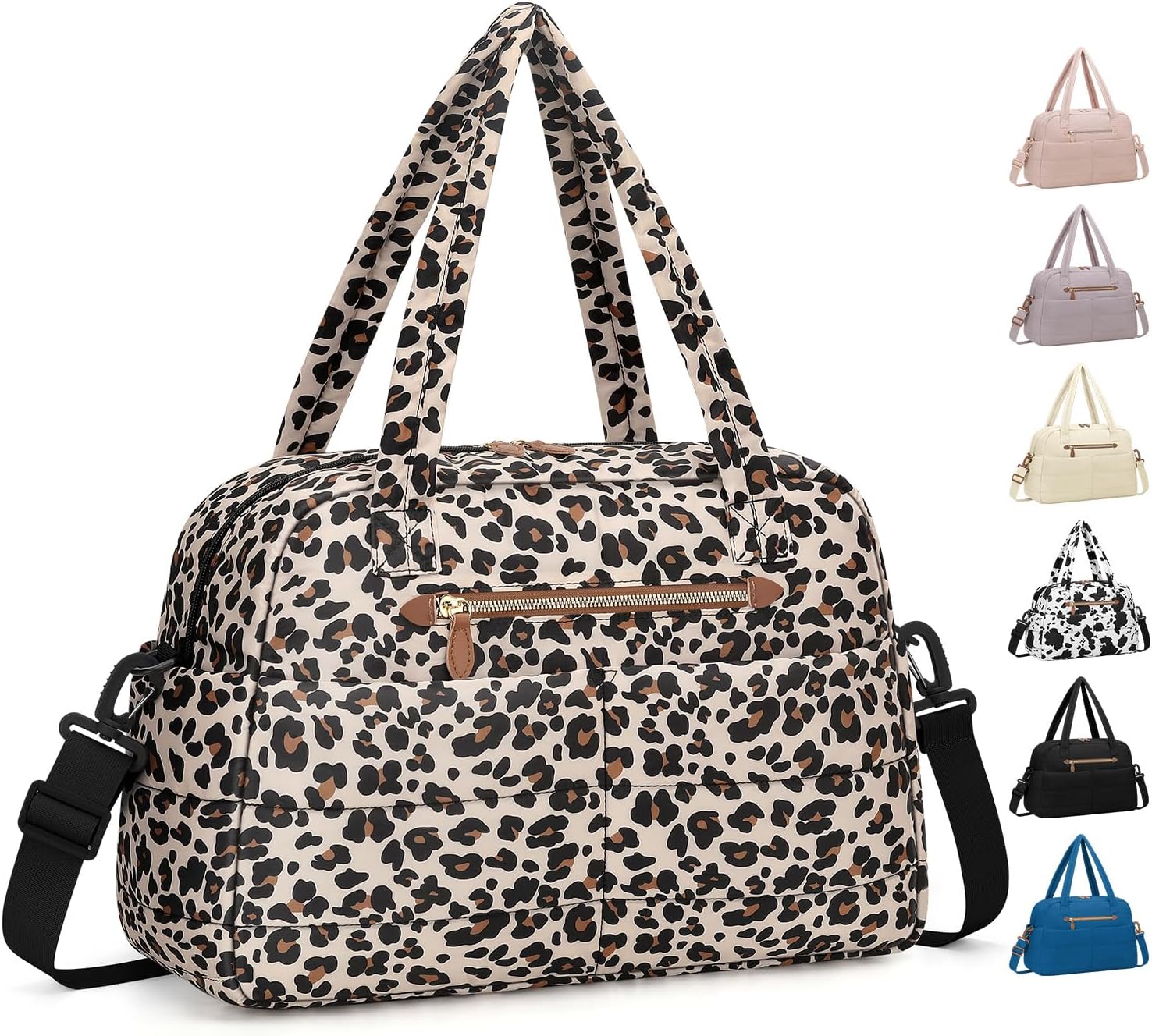 Travel Duffle Bag,Puffer Carry On Duffel Bag with Laptop Compartment Waterproof Overnight Weekender Bags for Women Large Hospital Tote Bags for Labor and Delivery(Medium,Leopard)