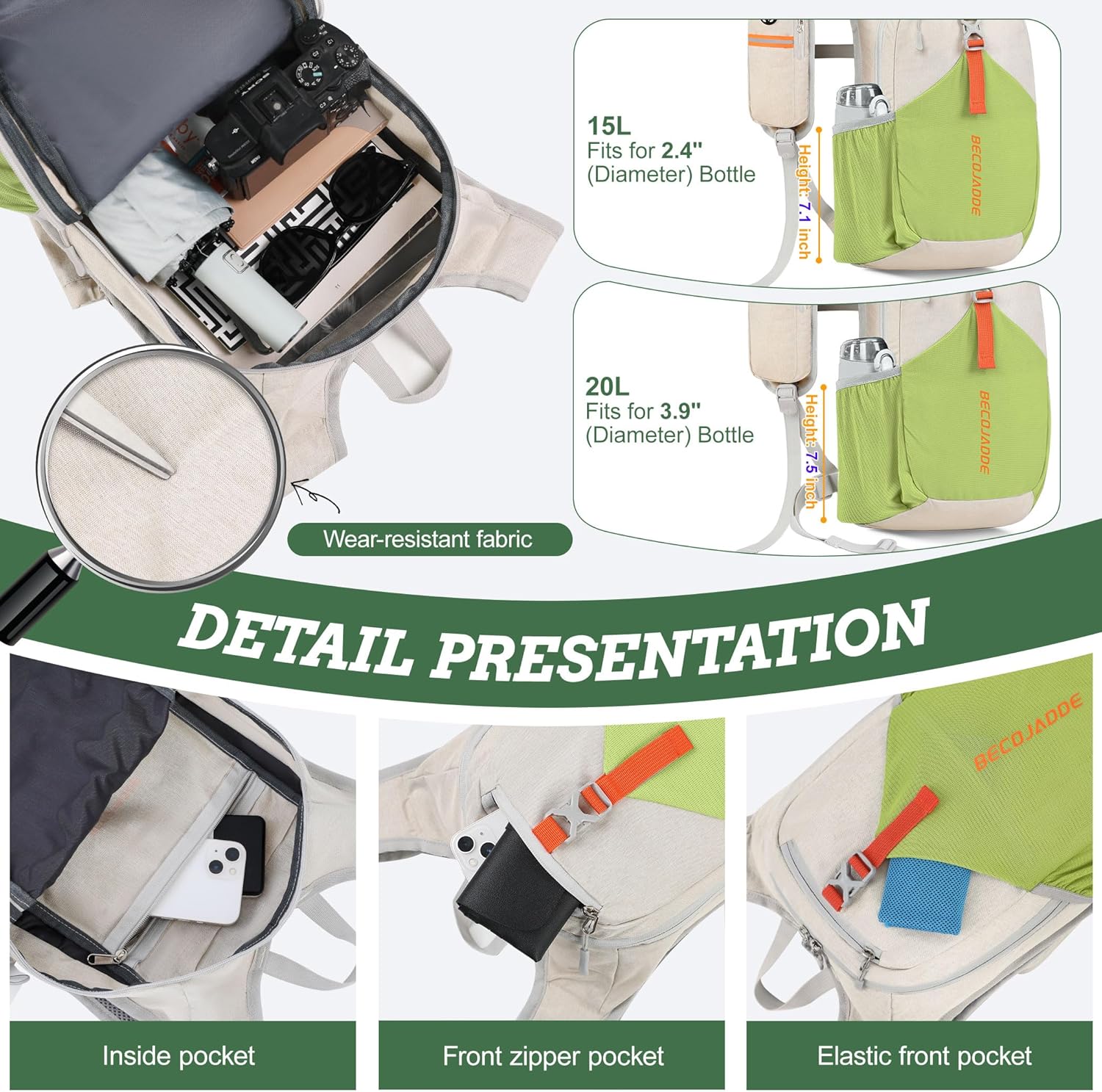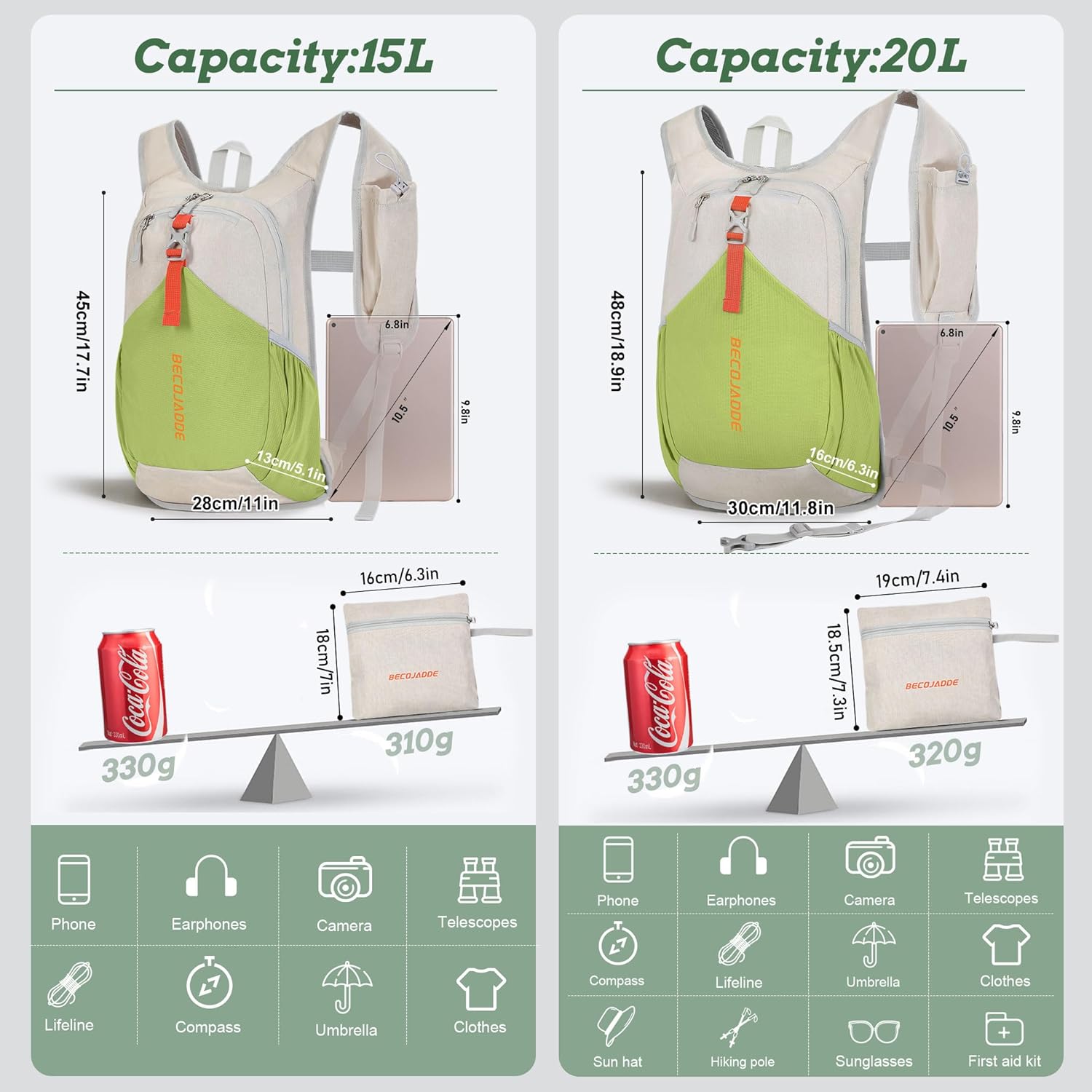 15L Small Hiking Backpack for Men Women Foldable Packable Back Pack Ultralight Hiking Daypack for Travel Camping Outdoor, Beige Green