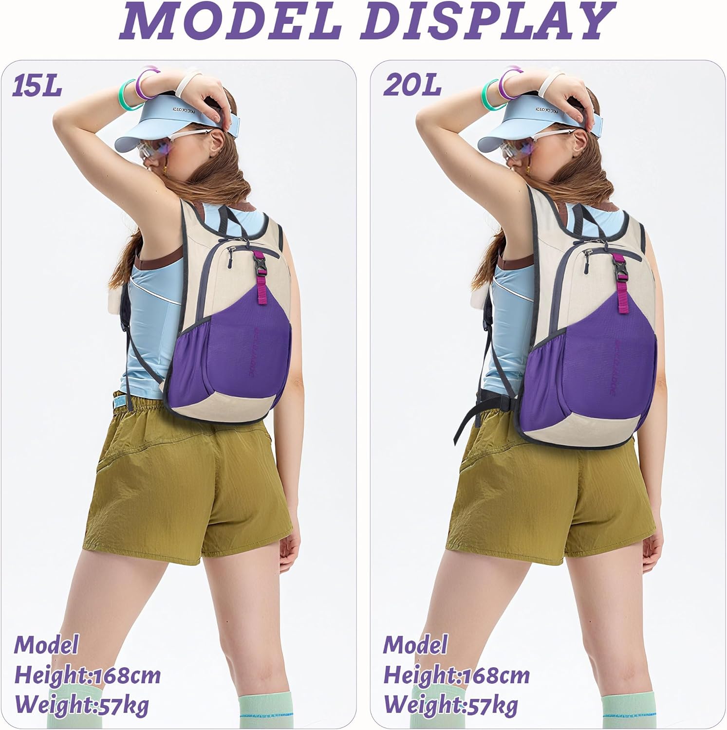 15L Small Hiking Backpack for Men Women Foldable Packable Back Pack Ultralight Hiking Daypack for Travel Camping Outdoor, Beige Purple