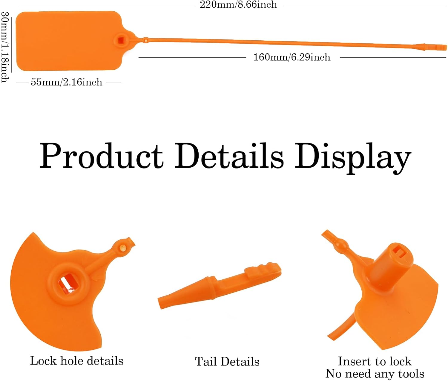 100pcs Luggage Tags Plastic Seals Shipping Label Logistics Use Sign Tie, Sealing Storage Multi Purpose Name ID Tag with Marker for Backpack, Schoolbag, Car Key (Orange)