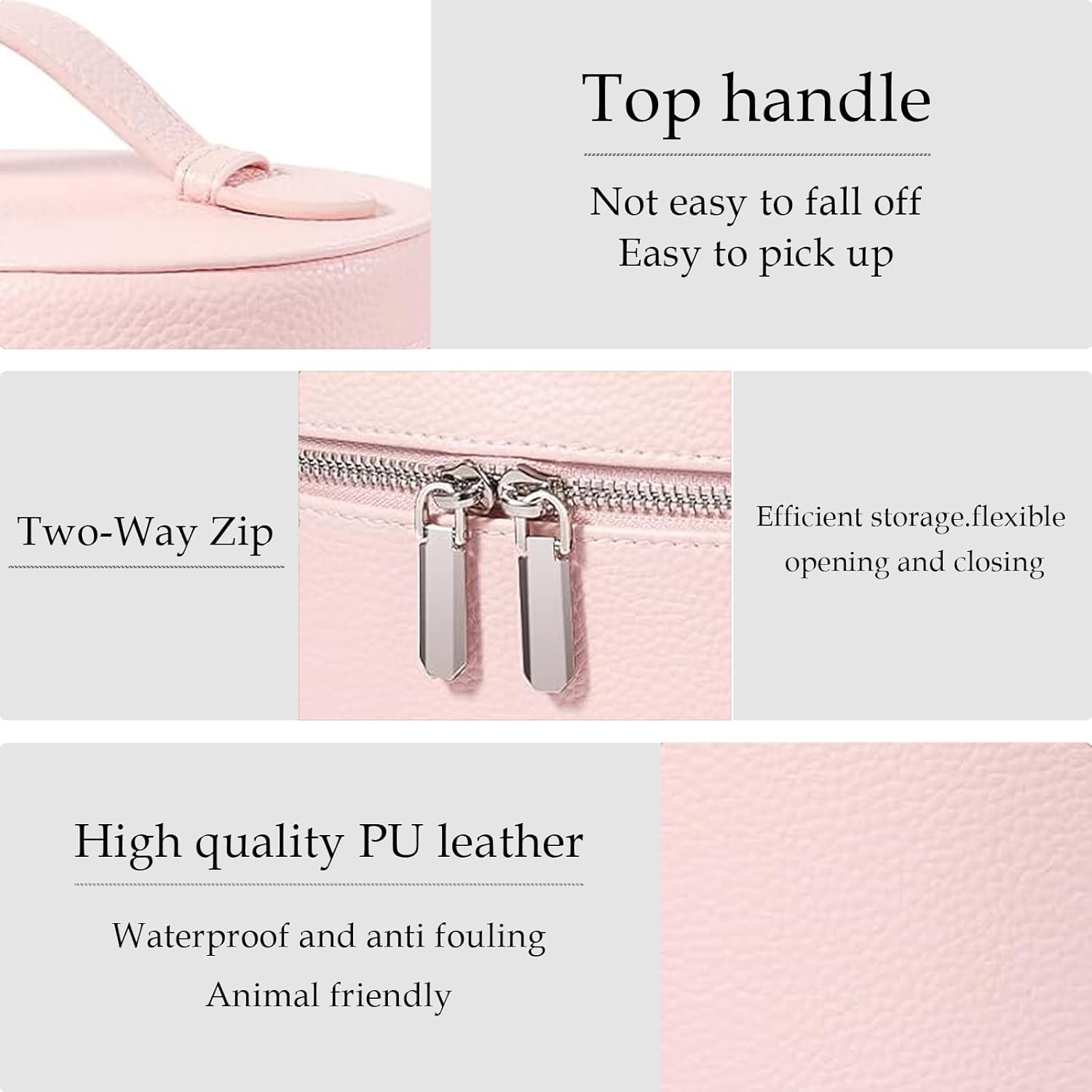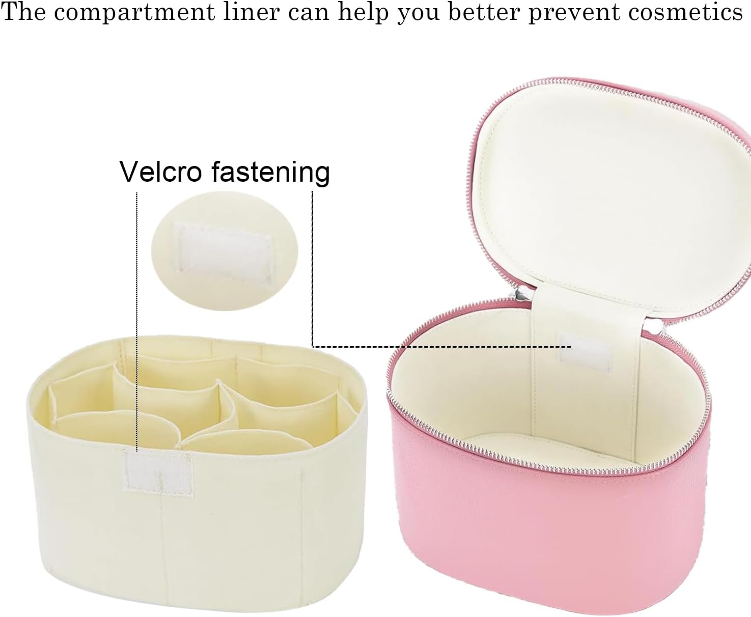 Leather Make Up Bags With Compartments, Pink Travel Cosmetic Bags for Women, Parallel Makeup Travel Bags Organizer Equipped With a Detachable Divider