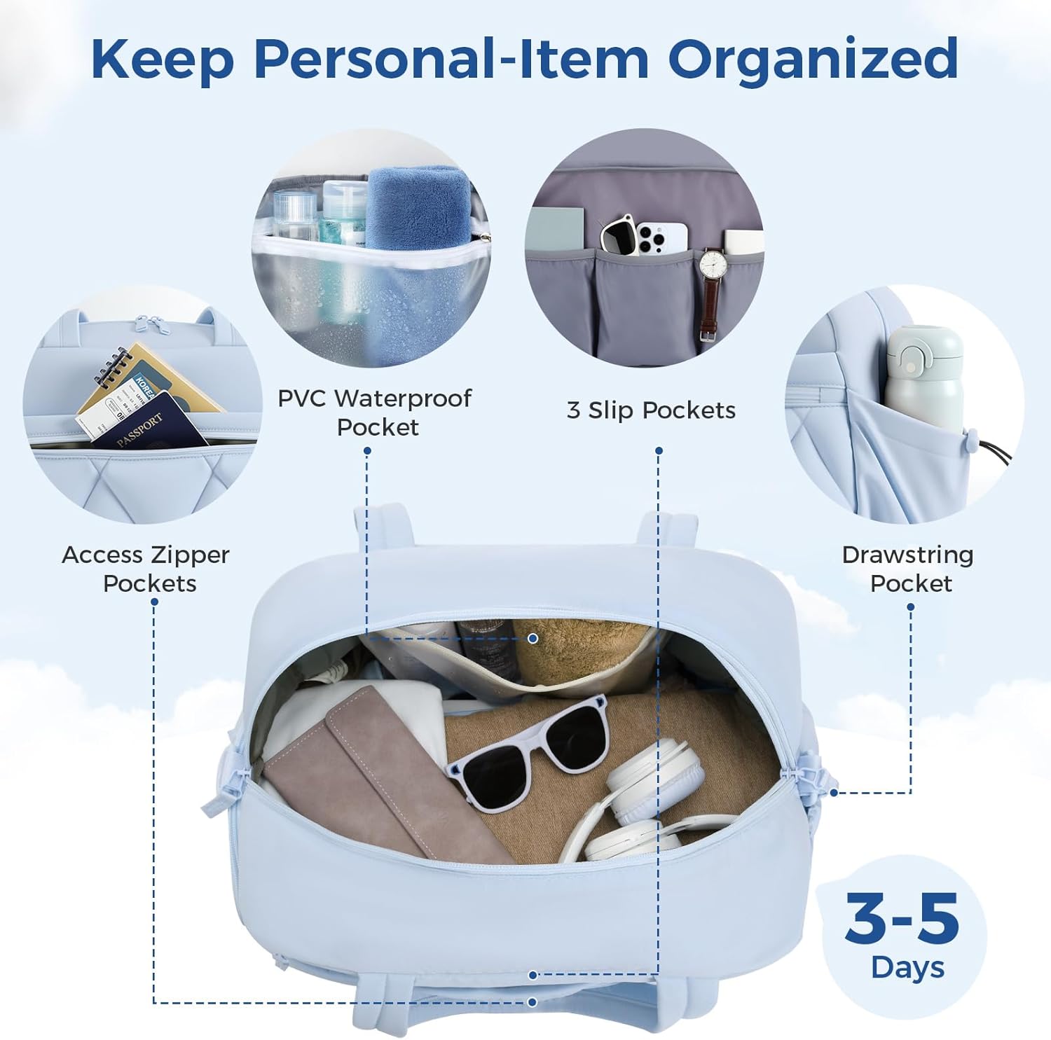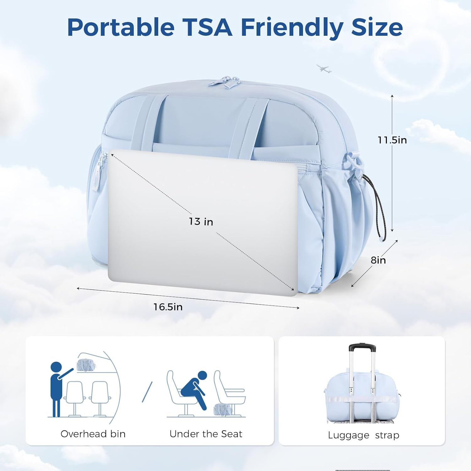 • [TSA-Friendly Carry-On Bag]-Measuring 16.5 x 8 x 11.5 inches, this carry-on tote bag meets the standards for airline carry-on baggage, saving you the hassle of security checks and check-in time. On the plane you can put it in the front seat bottom or overhead compartment, on top of that, it slides easily onto the boot handle and stays in place it is the best partner for your flight!