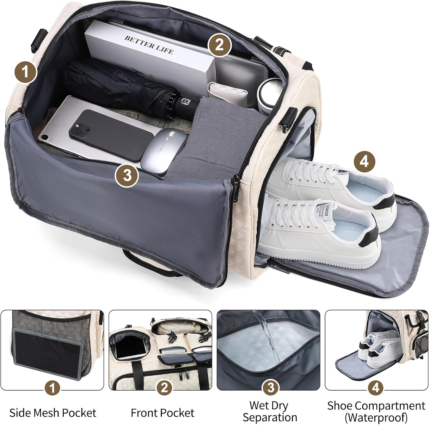 Gym Bag for Men Women, 40L Sport Duffel Bag, Anti-Theft Overnight Backpack W/Shoe Compartment for Fitness Travel, White