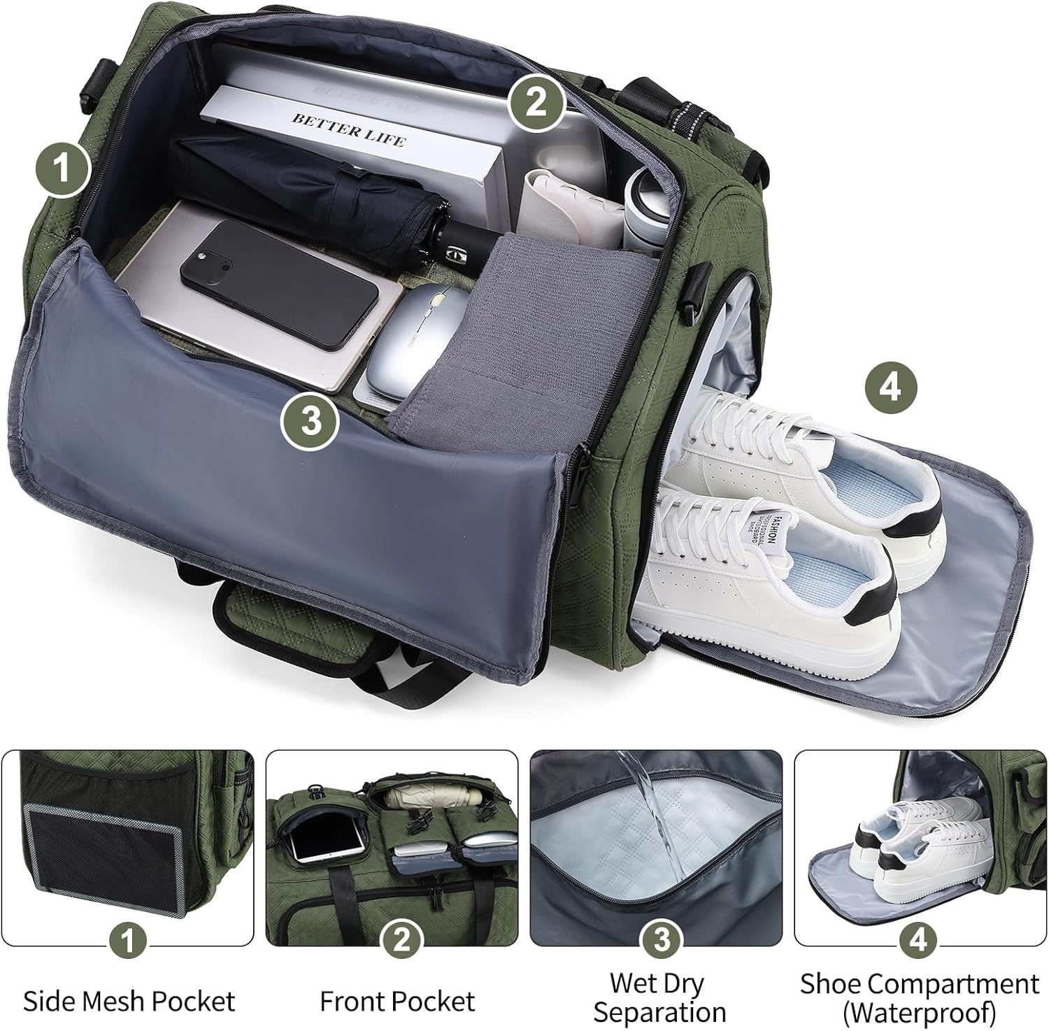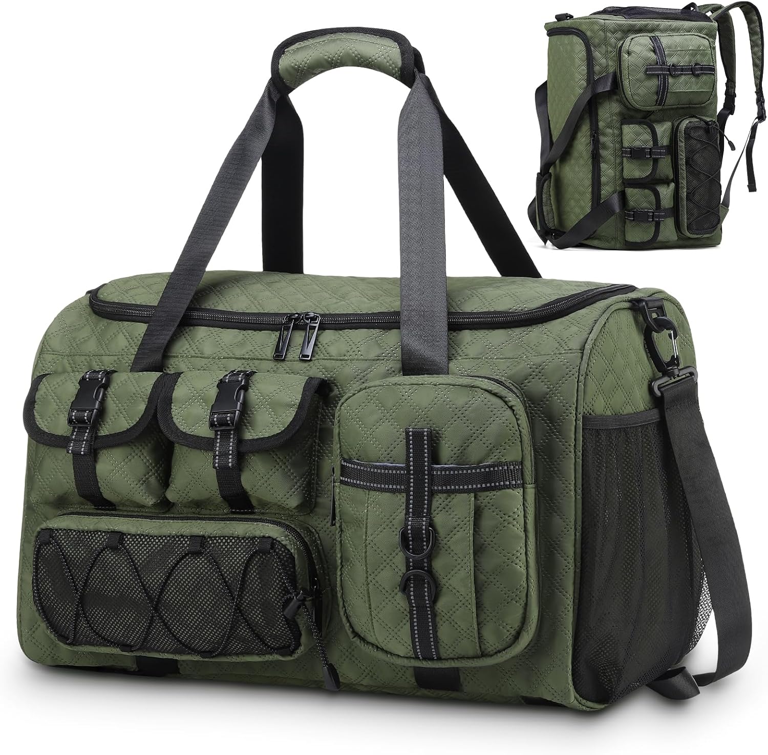 Gym Bag for Men Women, 40L Sport Duffel Bag, Anti-Theft Overnight Backpack W/Shoe Compartment for Fitness Travel, Army Green