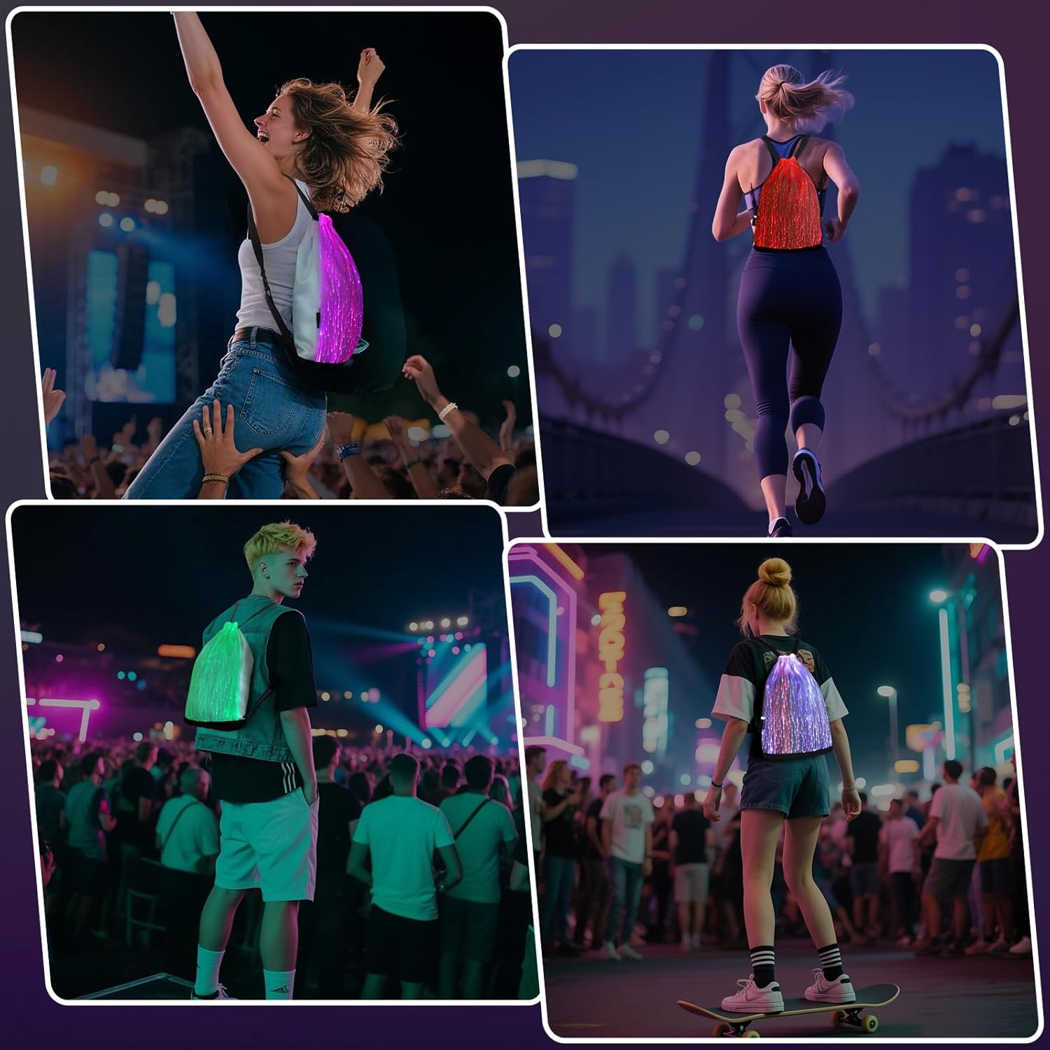 • Perfect for Adventures & Festive Celebrations: Your essential companion for hiking, parties, music festivals, carnivals, Halloween, and Christmas. LED bag would be an unforgettable, unique gift that shines bright on any occasion!