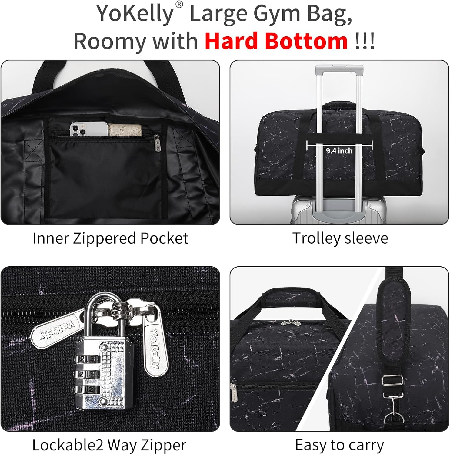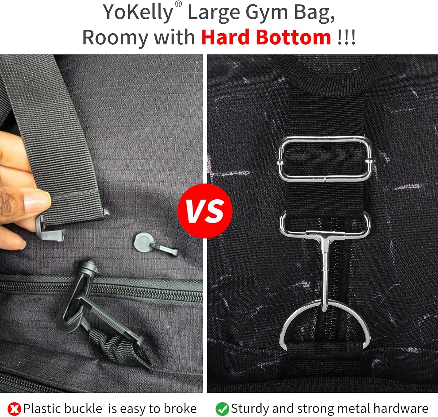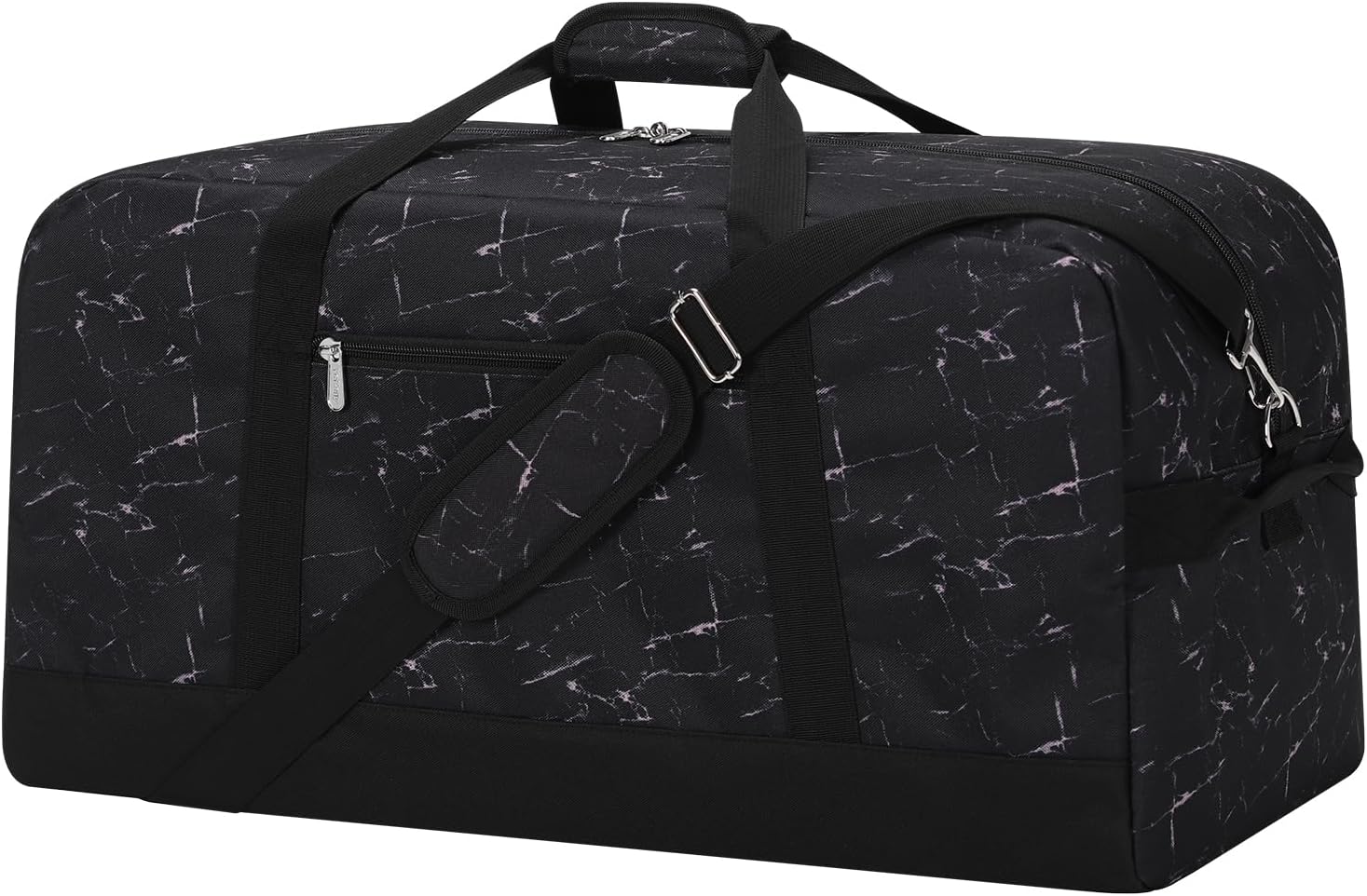 55L Mens Duffle Bag for Travel - 25 inch Sports Duffel Bag with Hard Bottom - Marble Black