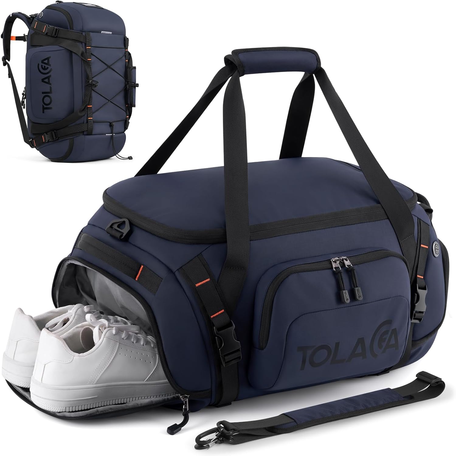 Tolaccea Gym Bag for Men & Women, 40L Duffle Bag Backpack for Travel Sports with Shoe Compartment, Wet Pocket & Extra Laptop Bag for 15.6'', 3-in-1 Sport Workout Duffel Carry On for Airplane (Navy)