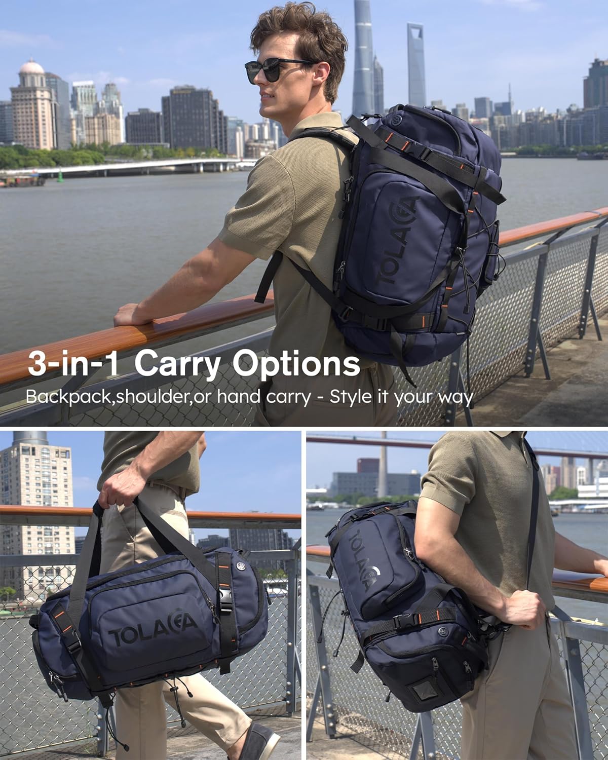 • 【3-in-1 Convertible Carry】Transform your duffle bag in seconds - choose between a backpack, shoulder bag, or hand carry bag. Hidden padded straps and a detachable crossbody strap provide maximum versatility, while dual handles make it easy to grab on the go. With dimensions of 22.83 x 9.84 x 11.02 inches, it fits as a carry on bag for flights and is ideal as a gym bag, travel backpack, or weekender bag.