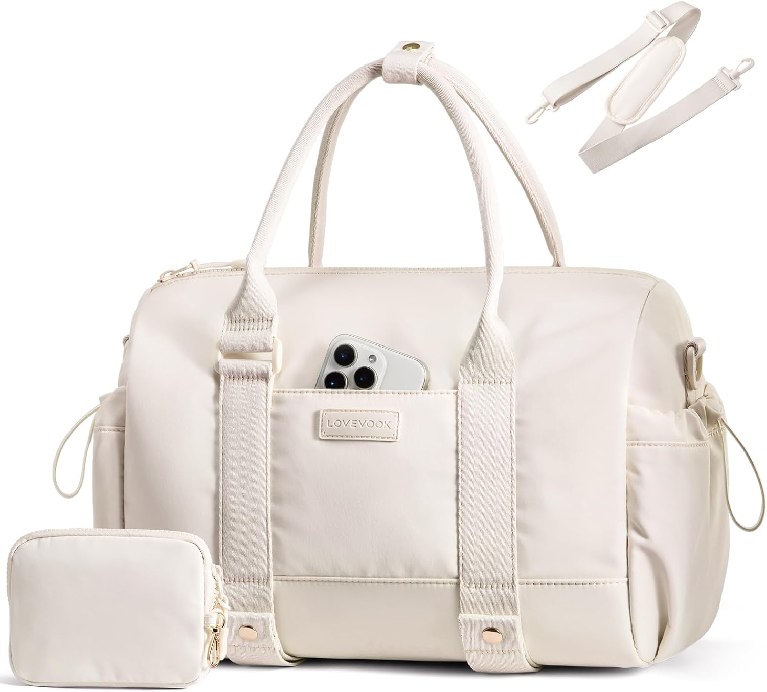 LOVEVOOK Small Gym Bag for Women with Yoga mat Holder, Mini Duffle Bag for Travel with Wet Pocket, Overnight Personal Item Bags (White, 14.5 inch-Small-2Pcs)