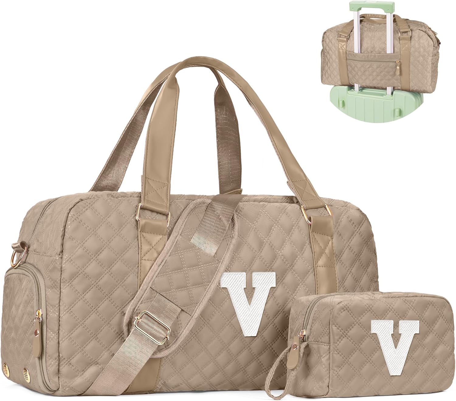 Initial Duffle Bag Women Girls Gift: Personalized Travel Gym bags, Dance Cheer bag Sports for Girl, Kid Gymnastics Bags, Birthday Gifts for Women Girls Kids Teens Mom Teacher