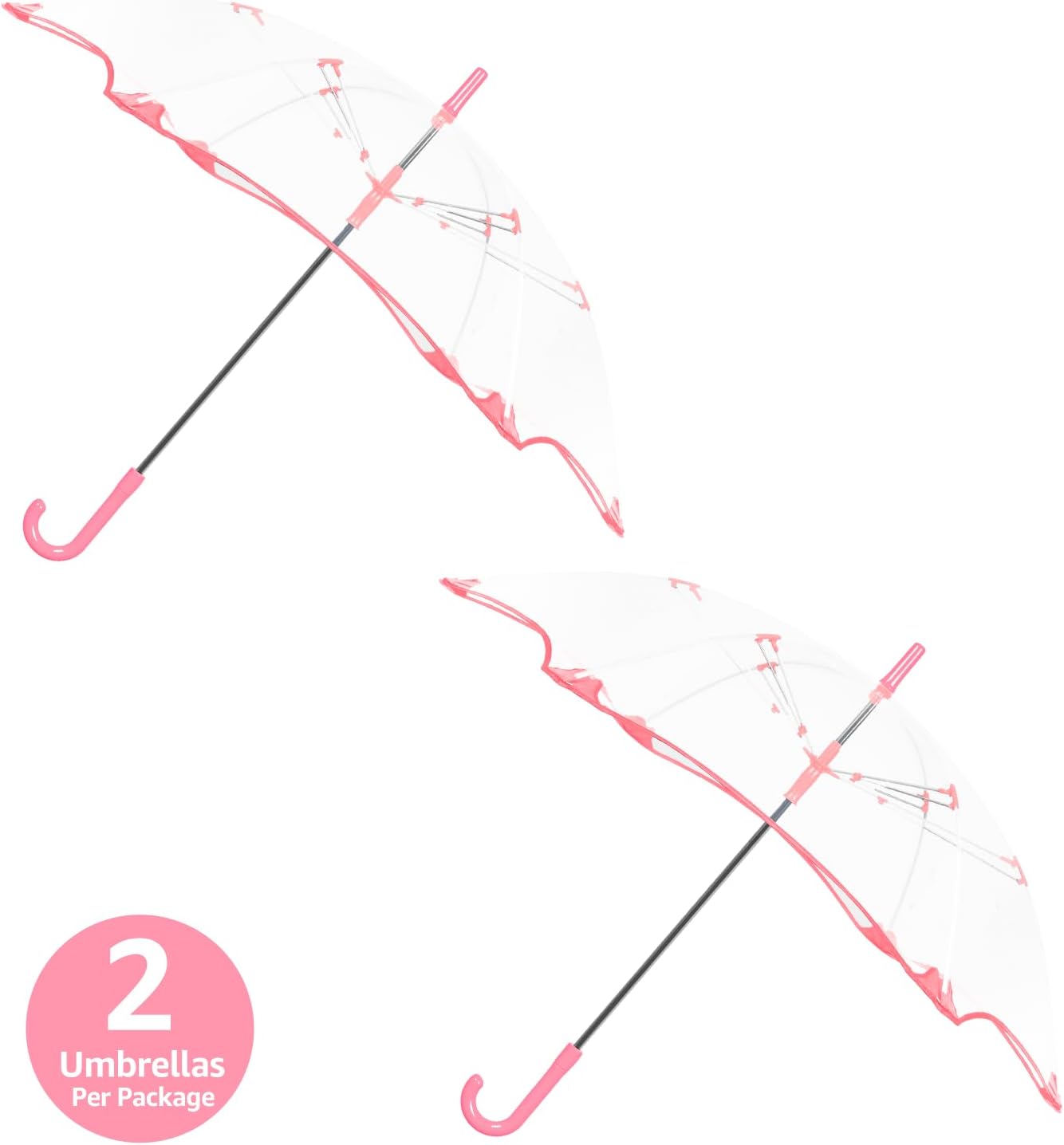 2Pcs Kids Clear Umbrella for Rain, Round Bubble Umbrella,Wide Coverage Arc 43 Inch,Auto Close,Windproof Strong Double Fiberglass Ribs With Spring Supporting for Each 6 Panels, Steel Shaft, Spoke Big Protectors for Safety