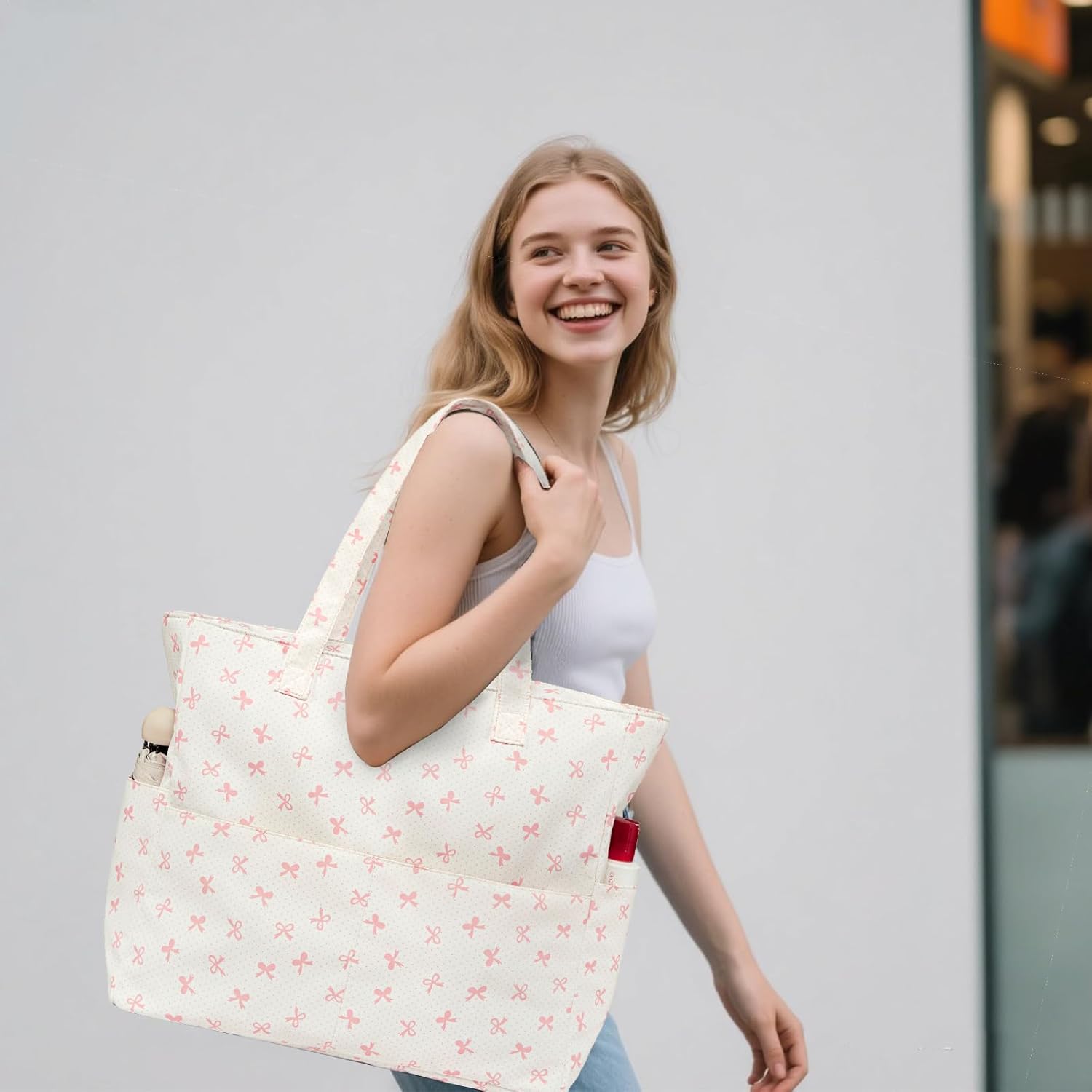 • Tote Bag with Zipper perfect for carrying when you step out for beach, travel, weekender, swimming, pool, gym, s hopping, picnic since it folded up small and lightweight, can be tucked in your backpack or luggage case easily. Also a good choice for reusable grocery tote, diaper bag, carry-on bag, travel bag, storage bag, really a super practical beach bag for women, grab one of them, it will not let you down.