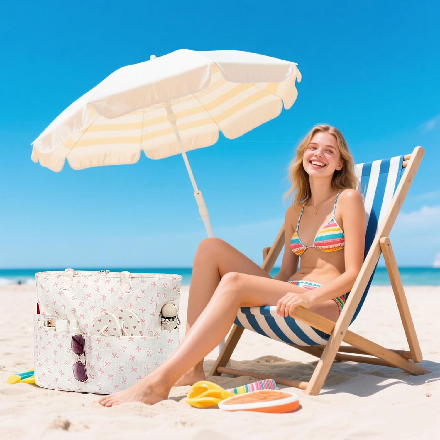 • Waterproof Sandproof Beach Bag : This beach tote features high density polyester, which is sandproof, easy to clean, sand shakes right off instead of carrying it home with you.