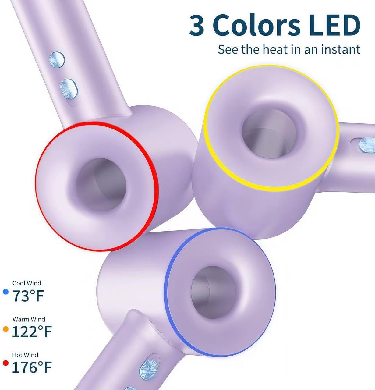 • High Speed Brushless Motor:The hair dryer uses a 110,000-FPM high-speed brushless motor, delivering intense airflow for fast,efficient styling,ideal for thick, curly, or long hair,it can instantly generate strong airflow that does not damage the hair, and quickly dries the hair