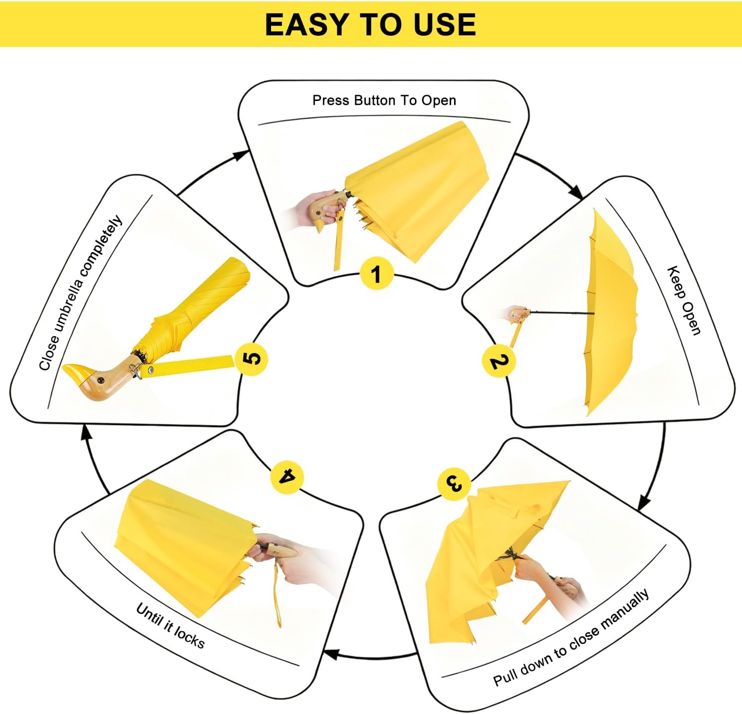 • Auto Open & Manual Close : This duck handle umbrella enables one-touch automatic open and smooth manual close. It retains the convenience of automatic opening while eliminating the effort required to folding automatic umbrellas
