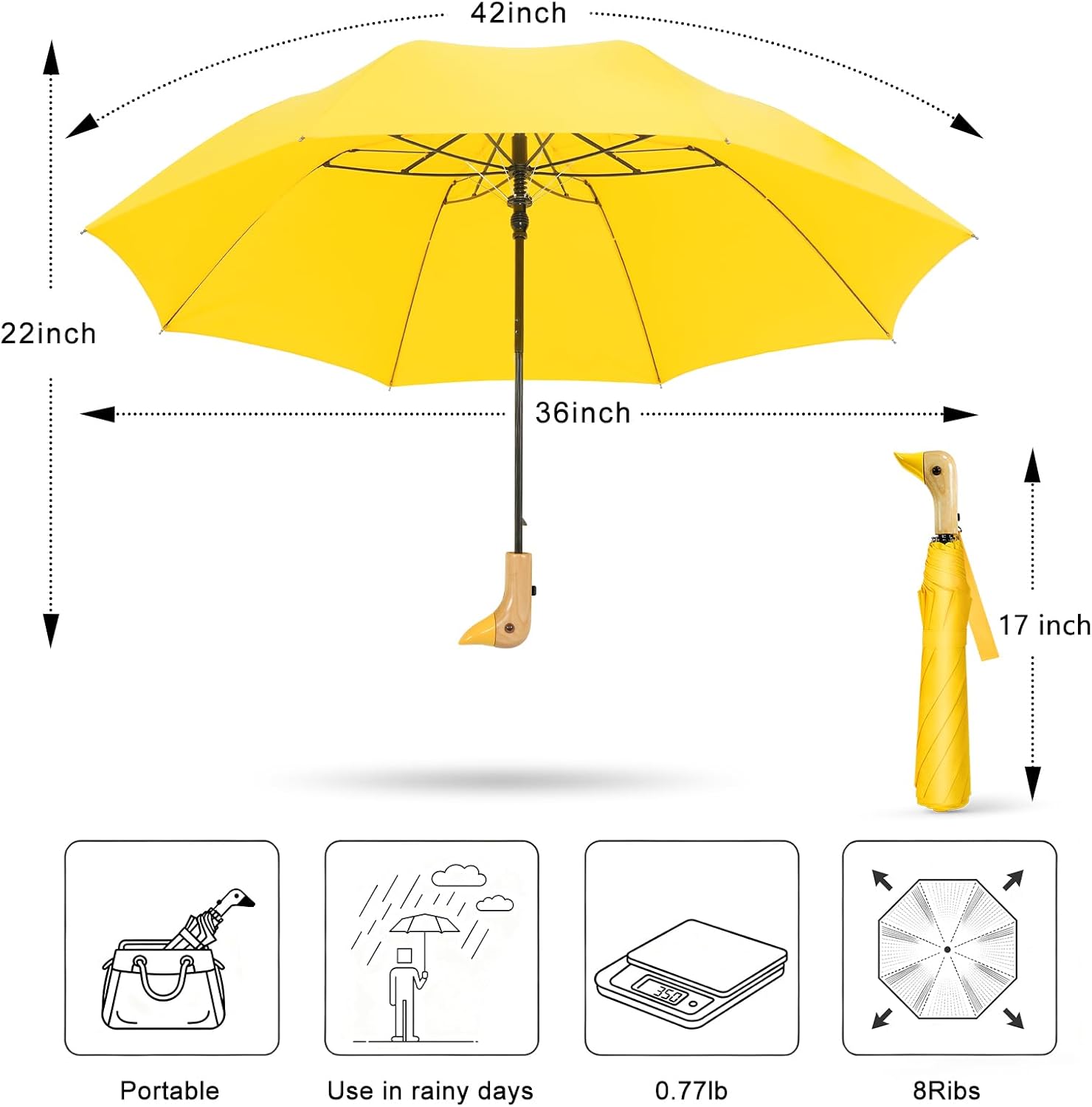 • Cute Design: This is a handmade, custom-designed folding umbrella with a fun duck head handle made of wood. It's perfect for girls who love kawaii style
