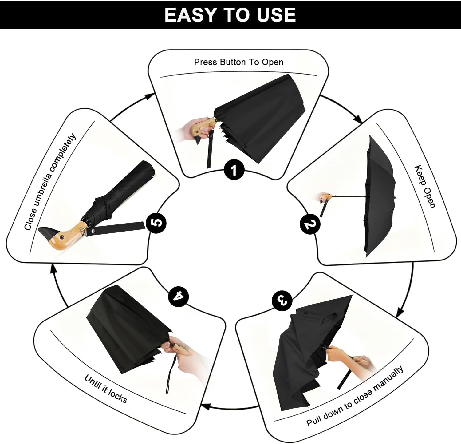 • High Waterproof Nano-Umbrella: LEAGERA windproof umbrella features high-density nano-cloth that dries instantly, preventing water from splashing