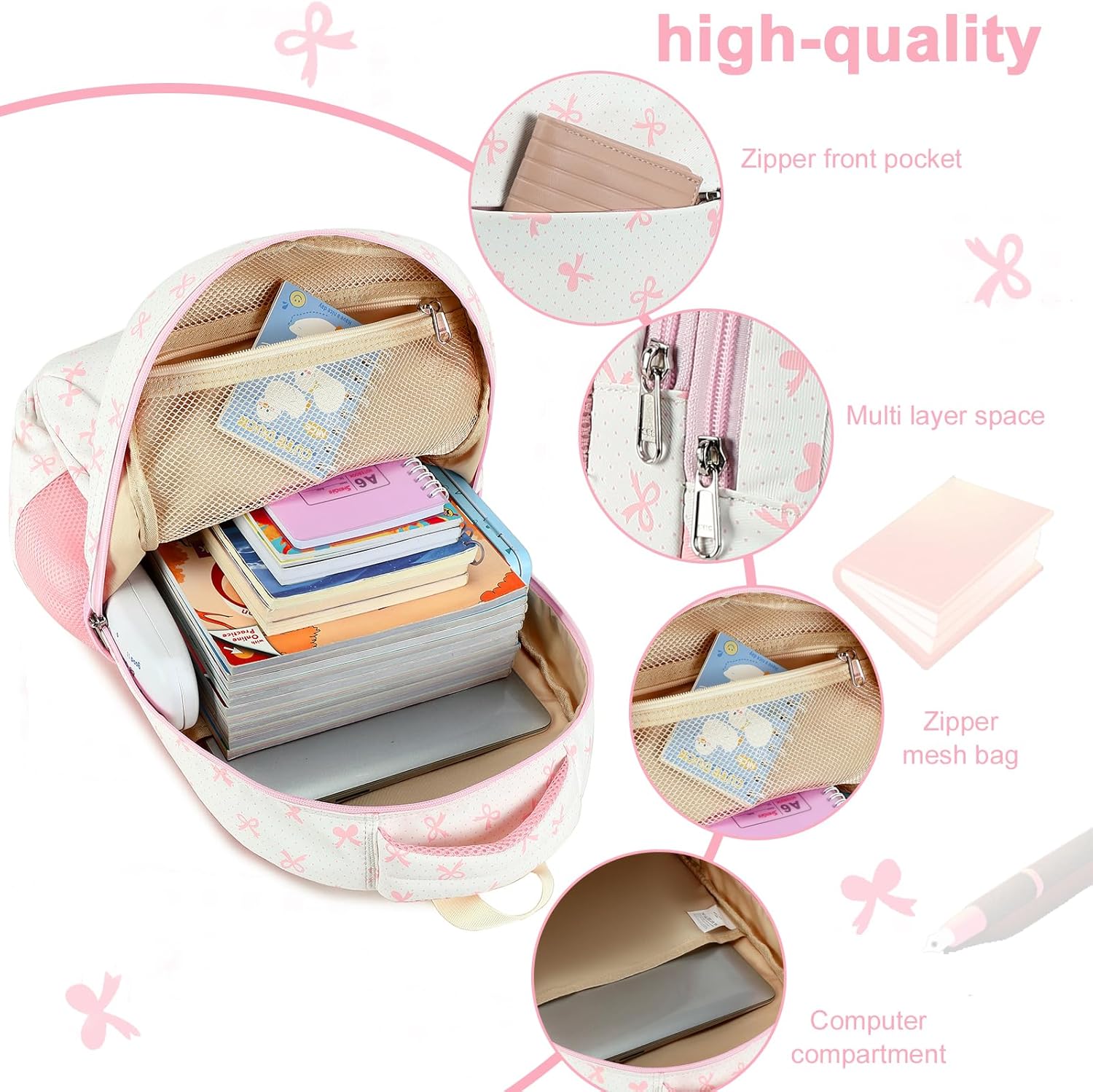 • Practical girls backpack has multi-layer pockets which can satisfy your girls school supplies, separate compartment fit with sleeve can fit 15-inch laptop, secure the laptop safety, do not worry laptop will be moving rocking up and down when running.