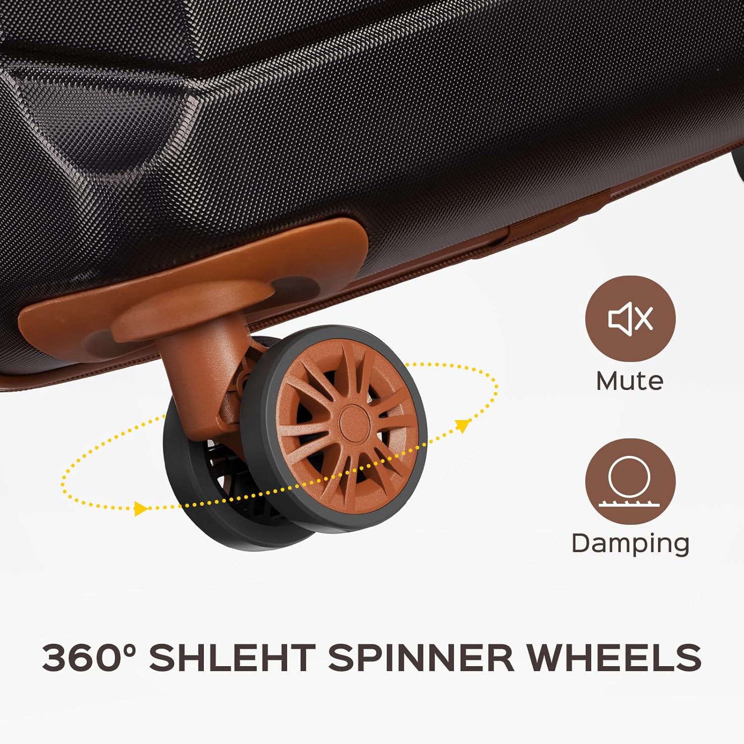 • 8 Smooth Rolling Silent Wheels: Hard luggage sets with spinner wheels roll 360 degrees, making it easy to change directions. The durable all-iron handle easily extends and retracts to 3 different heights and features a comfortable TPR grip