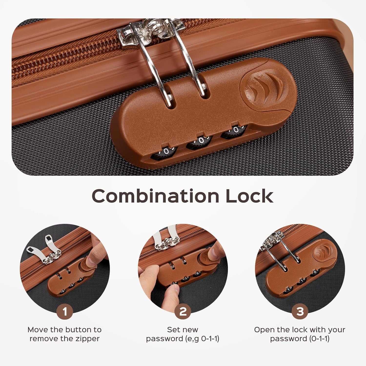• Durable design:ABS Hardshell, durable and lightweight, and the combination lock(not TSA Lock) keeps your belongings secure. Luggage sets 3 piece with 7 bags, a reliable travel companion