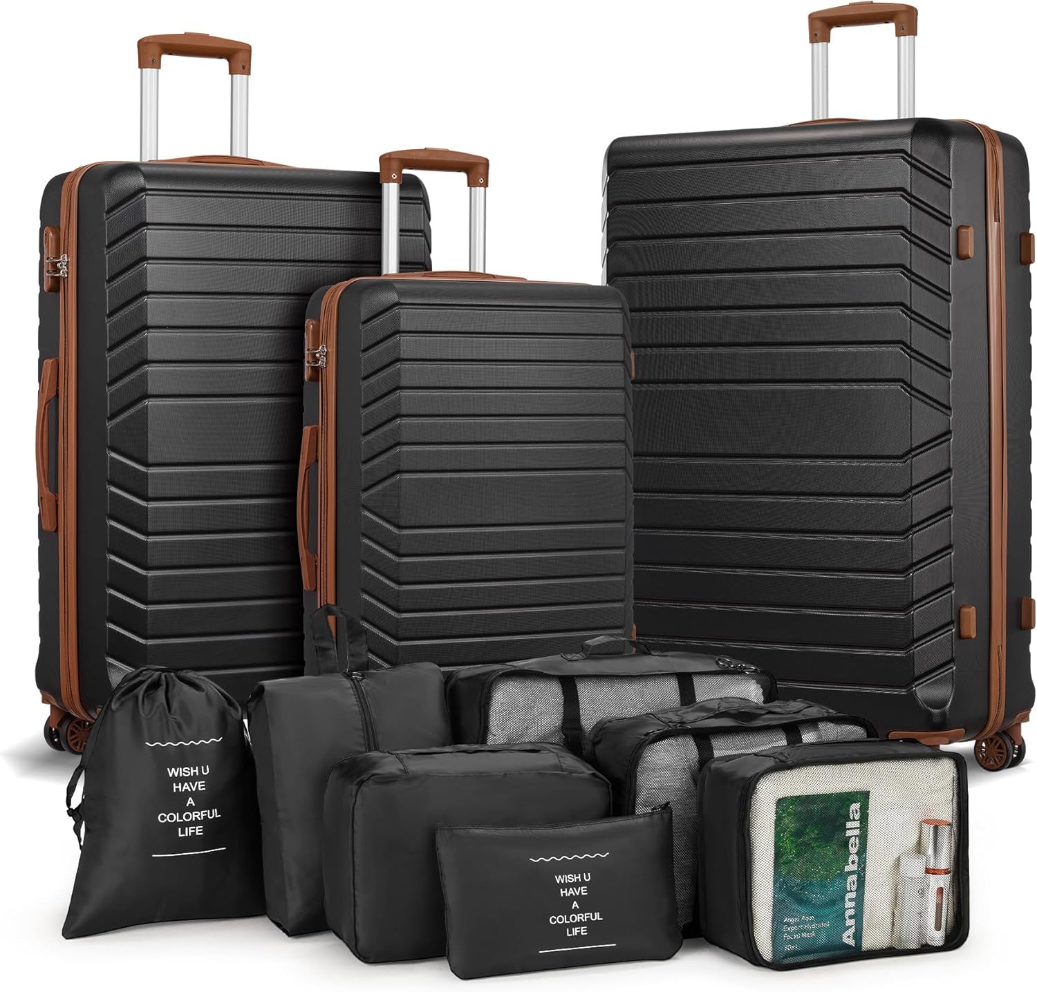 10 Piece Luggage Sets, 3 Piece Suitcase Set, 20 inch Carry on Luggage, 24 inch and 28 inch Checked Luggage with 7PC Packing Bags