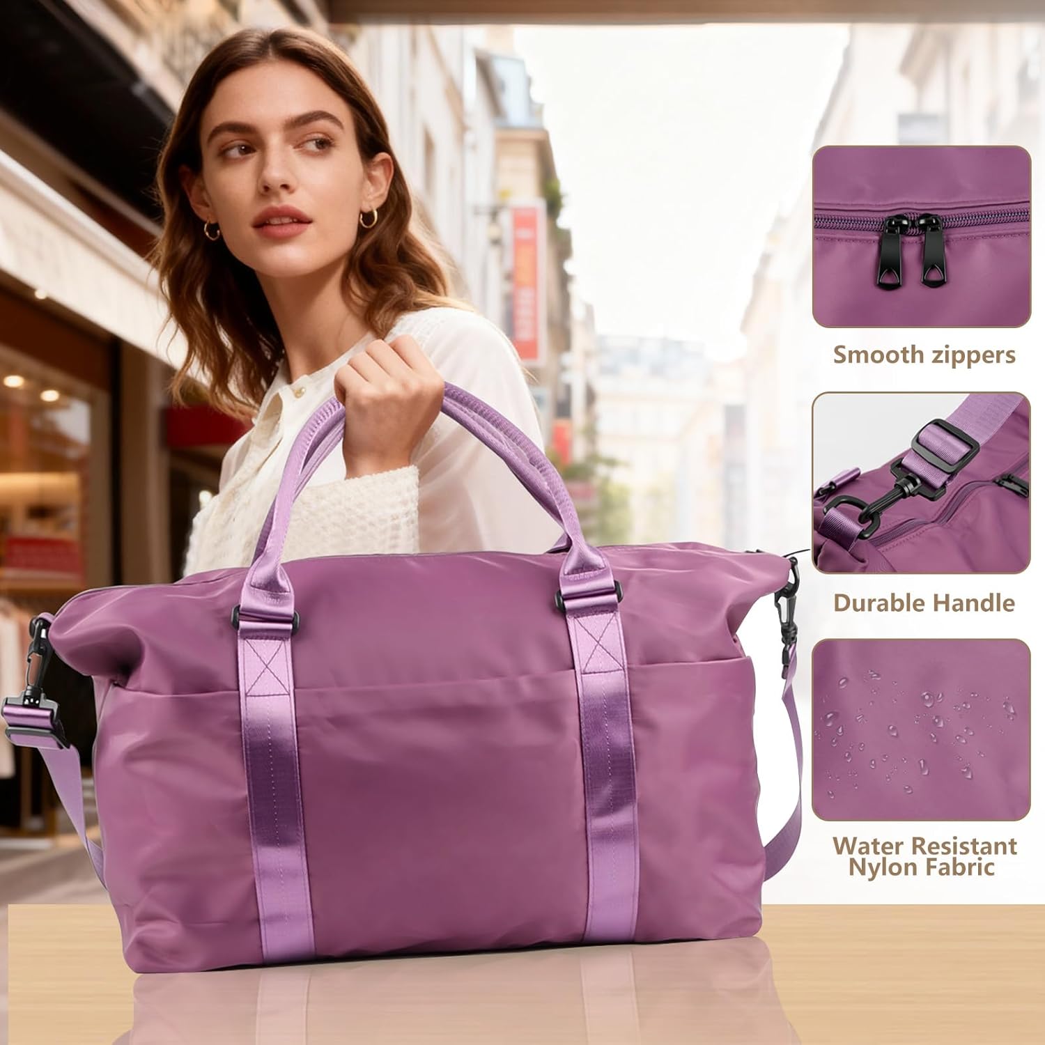 Weekender Duffel Bags for Women, Purple Travel Totes Bag for Airplane Essentials, Overnight Bags for Women with Trolley Sleeve, Large Carry On Hospital Bag for Labor and Delivery, Sport, Gym