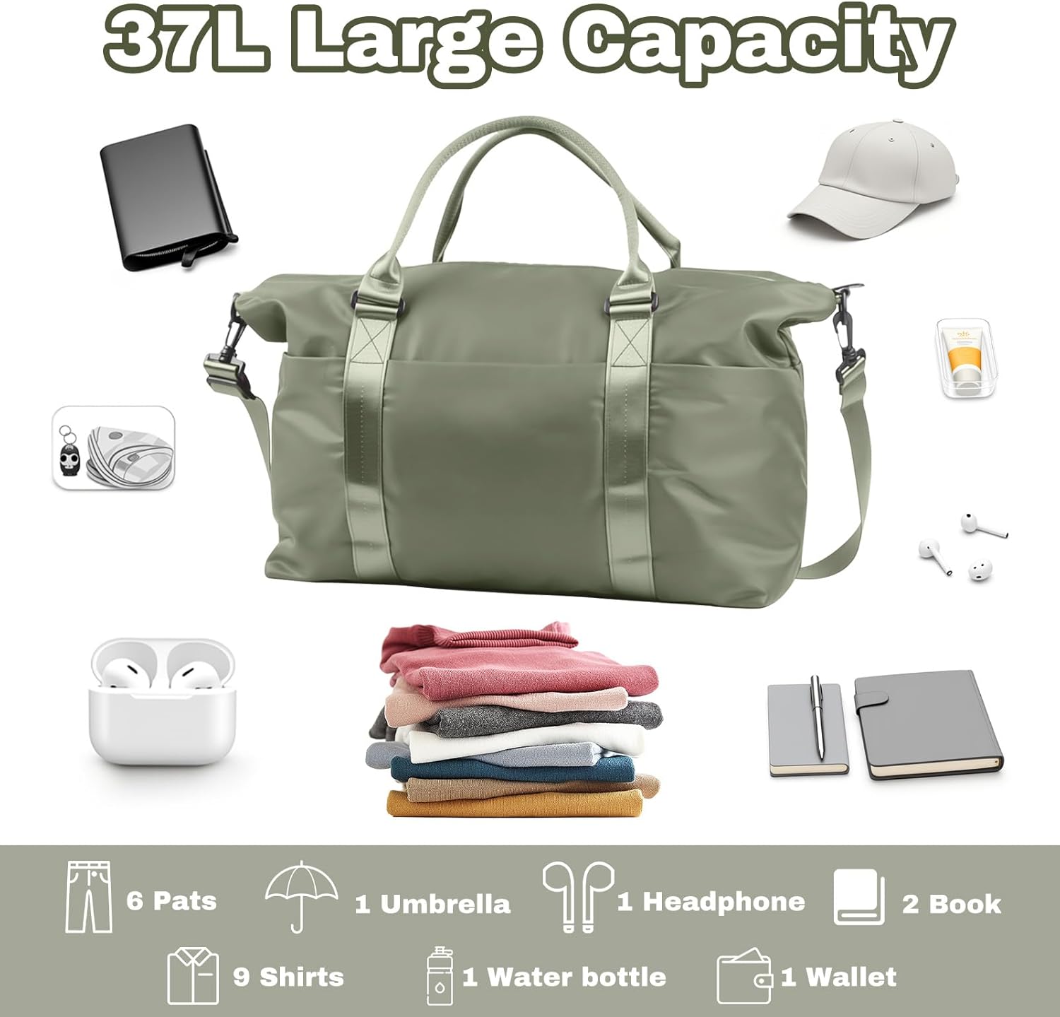 • ✅【Green Tote Gym Bag】The Travel Tote bag is made of tear-resistant and waterproof fabric with sturdy zippers and lining. This travel duffle bags is durable, waterproof, and tear-resistant. The main compartment of the sports duffle bag is equipped with a high-density waterproof bag, which can help you distinguish between dry and wet items.