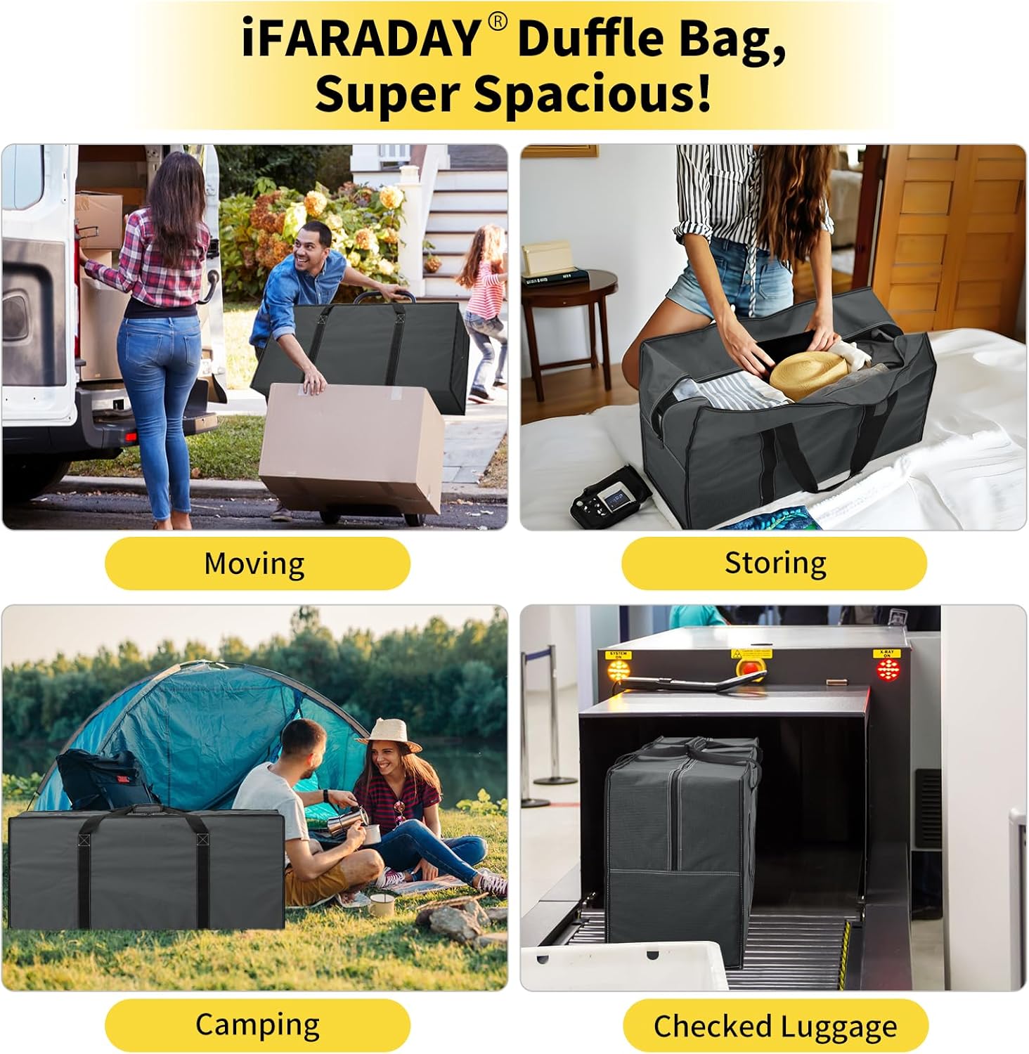 • DURABLE & LOCKABLE:Made from 420D Water & Tear resistant polyester with strong stitching, this extra large duffle bag for travel is built to withstand handling during flights, camping, or moving. Also, It features a smooth 2-way zipper with a keyhole that can be used with a lock to improve the safety of your items.