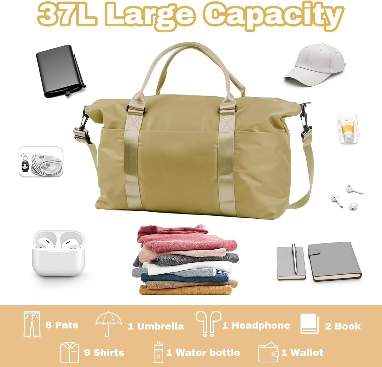 • ✅【Perfer for Weekender】This large travel duffle bag can easily hold all your travel items, making it ideal for hospital stays, overnight trips, weekend getaways, garment storage, sports activities, gym use, yoga, weekend shopping, camping, and picnics.