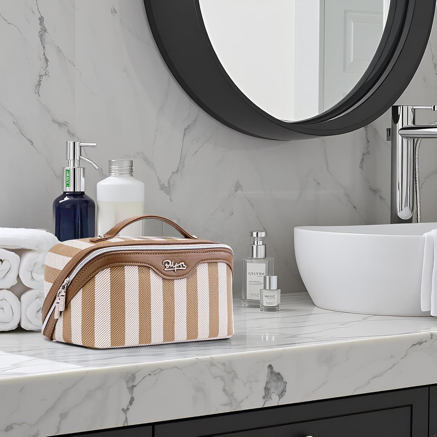 • Trendy Makeup Bag for Women: This make up bag is made of premium PU leather, soft to the touch, Waterproof & Durable & Stylish. Simple Stripes appearance design will bring you countless awesome compliments. BOYATU travel cosmetic bag is a great choice and ideal companion for you.