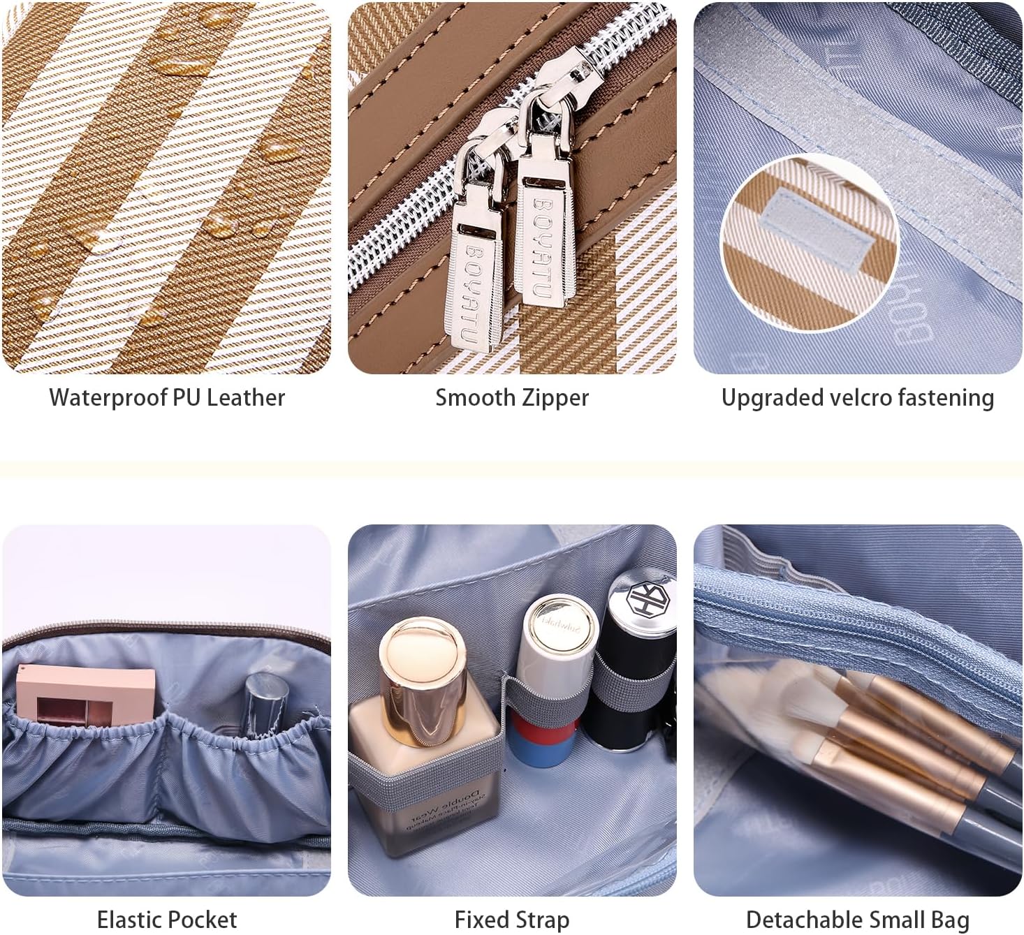 • 3 Pcs Makeup Bags Set: This travel cosmetic bags set comes with two detachable zipper small bags. Five precision-crafted compartments keep skincare and cosmetics flawlessly sorted, designed for seamless transitions between travel, business trips, outdoor adventures, and leisure escapes.