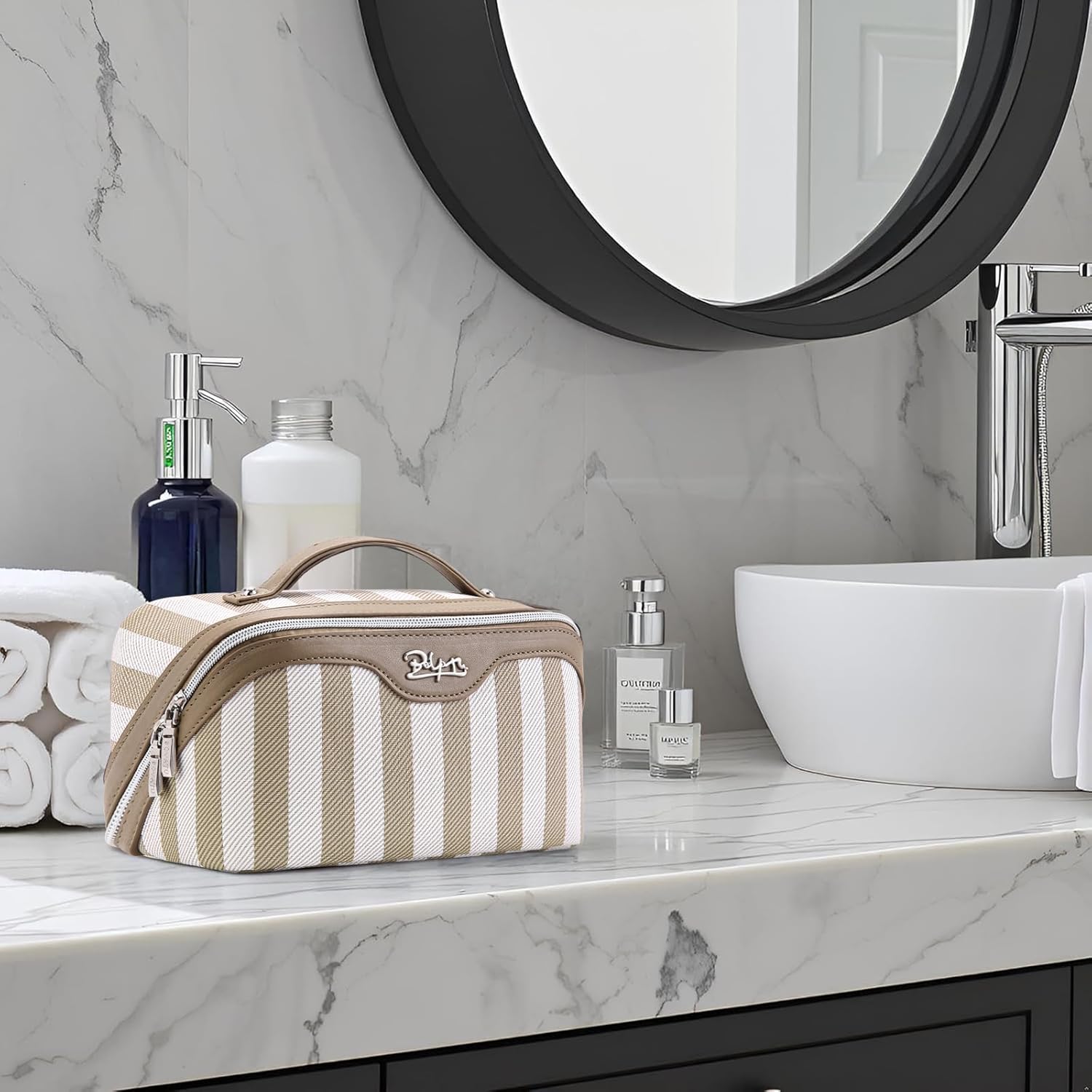 • Trendy Makeup Bag for Women: This make up bag is made of premium PU leather, soft to the touch, Waterproof & Durable & Stylish. Simple Stripes appearance design will bring you countless awesome compliments. BOYATU travel cosmetic bag is a great choice and ideal companion for you.